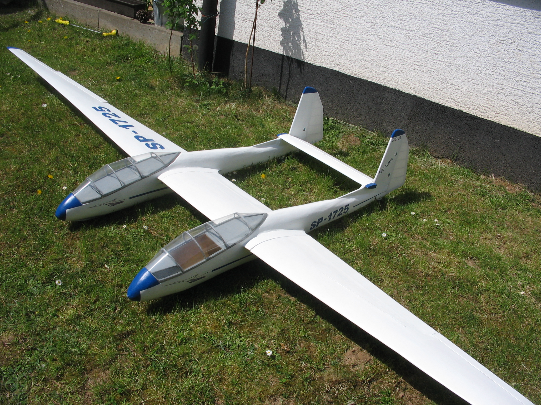 Ogólne wrażenia pozytywne. Model wygląda w powietrzu drapieżnie :) , sylwetka, tak charakterystyczna, dopiero przy większej prędkości podczas niskiego przelotu, wygląda zjawiskowo :P . Swoista bryła szybowca przyciąga wzrok, cieszy, wręcz inspiruje. Wiem, wielu ta sylwetka nie pasuje, bardzo futurystyczna jak nawet na obecne czasy, ale polecam zobaczyć model na żywo, w locie to zrozumiecie o czym piszę :lol:. To coś zupełnie innego niż mnogie na naszych lotniskach sylwetki jantaro lub aeswu podobnych szybowców , klonów jednej koncepcji aerodynamicznej. Troszeczkę w to wszystko wpisuje się również Kobuz, przez jednych kochany, a przez innych pogardzany....jako model oczywiście ;) .