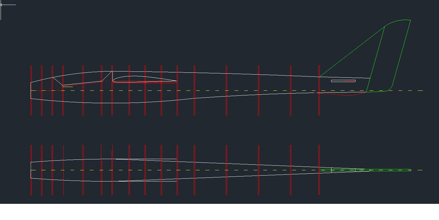 Zdecydowałem się na wręgową konstrukcję kadłuba, krytą balsą najprawdopodobniej 1,5mm, a na to tkanina 20 g/m².
