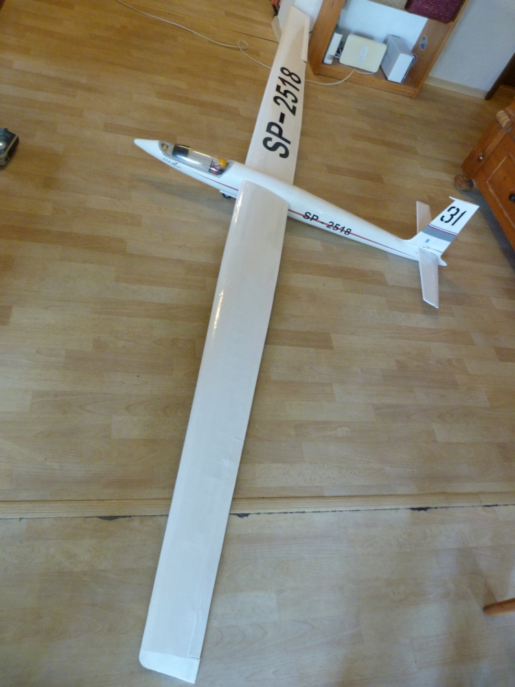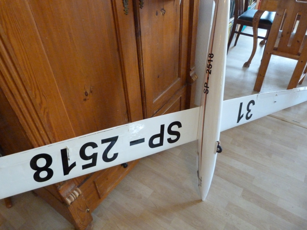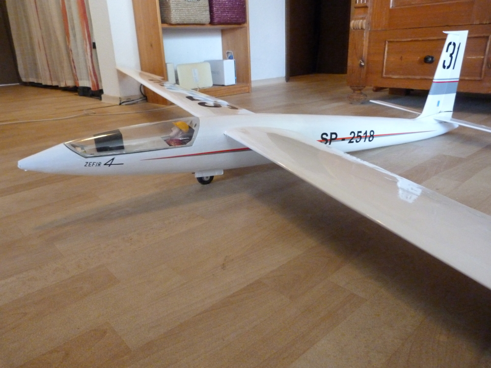 Teraz moje pierwsze wrażenie optyczne: myślę, że skrzydło porusza się bardzo ładnie podczas lotu, mam nadzieję, że tak jak oryginał. Z własnego doświadczenia wiem, że tylko Foka - skrzydło jest bardzo sztywne, ale ma tylko 15m rozpiętości, a Bocian z rozpiętością 18,10m skrzydło porusza się znacznie bardziej i myślę, że tak samo będzie z Zefirem 4.
