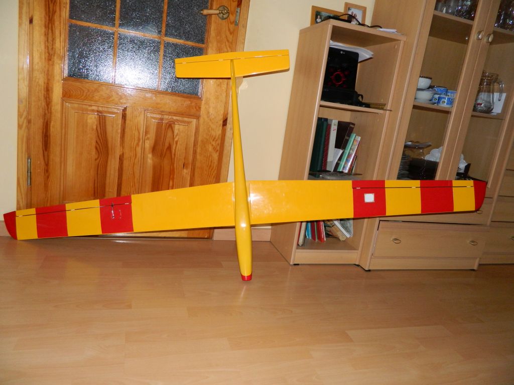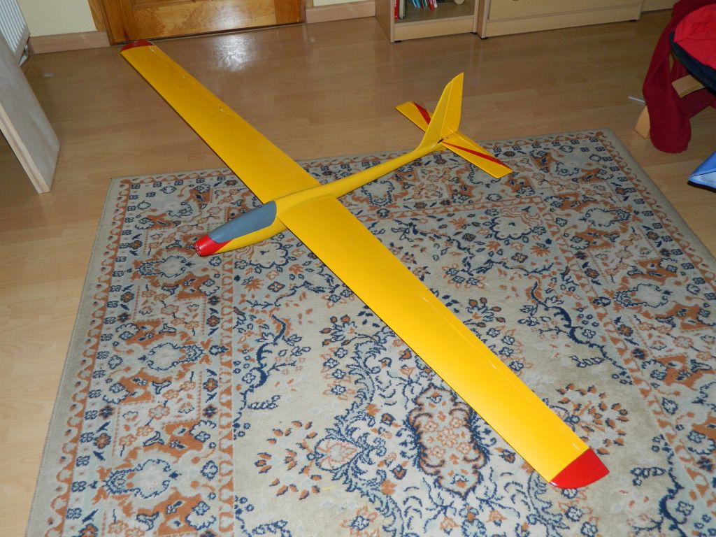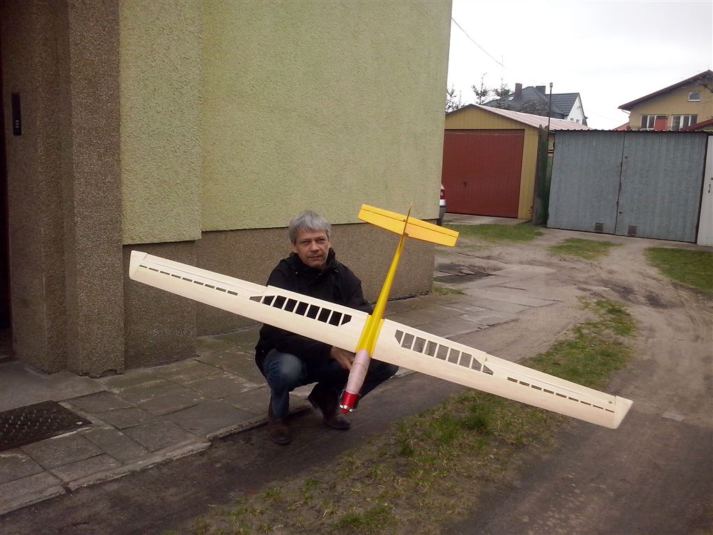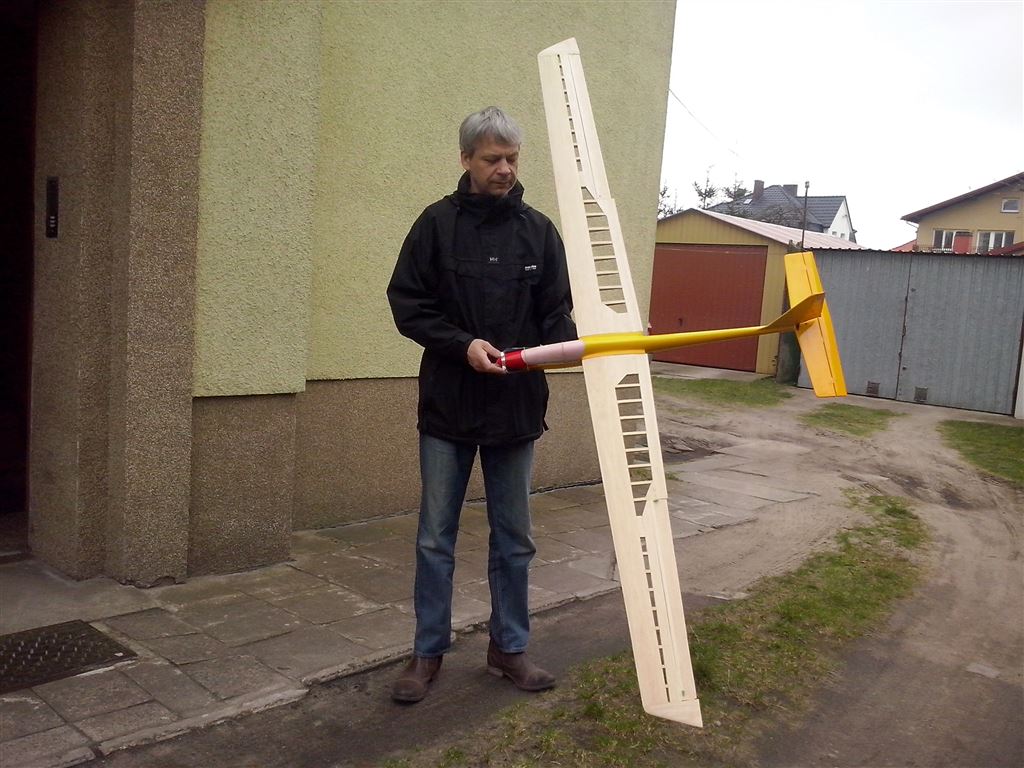 Model złożony i wstepnie ustawiony. Wyszło 1308 g do lotu, czyli ok 38g/dm^2......nie dokladałem ani grama wyważenia :o . SC na takim ustawieniu ok 60 mm od natarcia, z programu wyszło 56-69 mm. Jadę na lotnisko :?