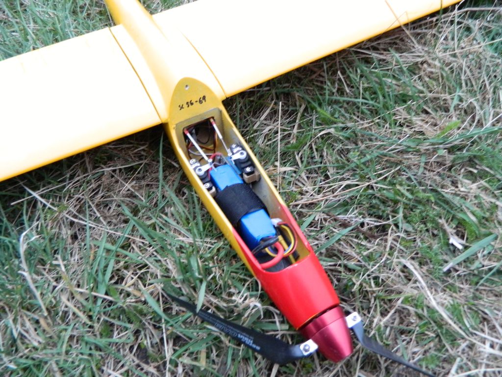 Silnik Xcopter 2836 850 Kv, śmigło na kołpaku Turbo Pelikan 11x6 (?), regulator no name 30 A, serwa sw i sk HS81, lotki SG-92. Waga do lotu 1310 gram, obciążenie powierzchni nośnej ok 38 g/dm^2.