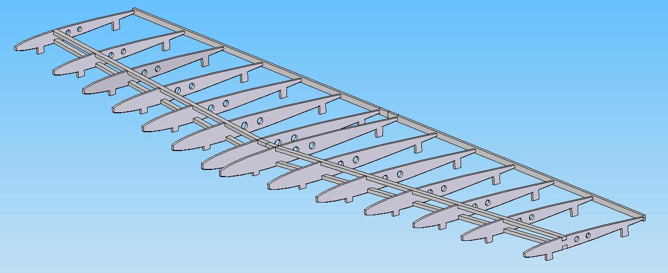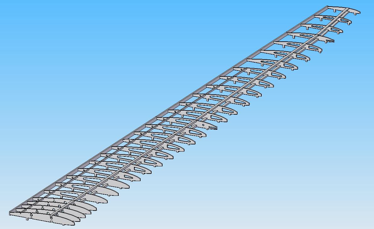 Musisz się zdecydować jak to skrzydło chcesz konstruować, bo może kryte folią, a może trochę balsą to trudno dyskutować.