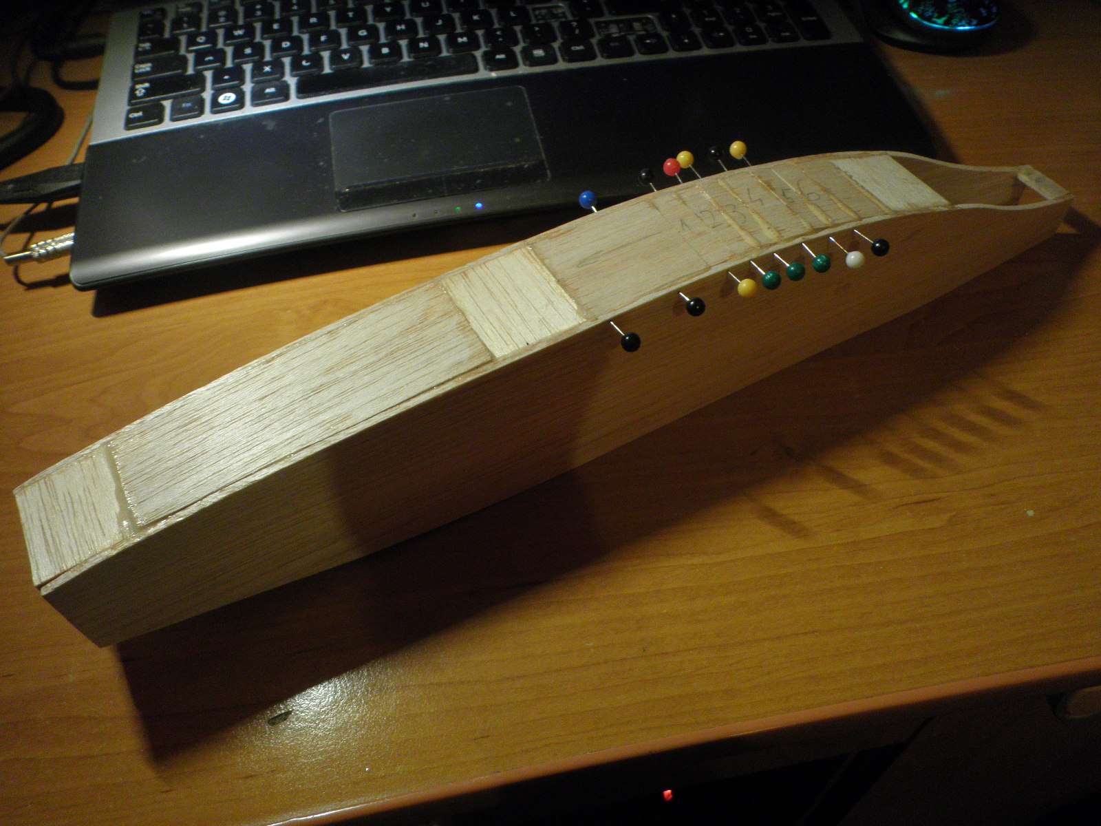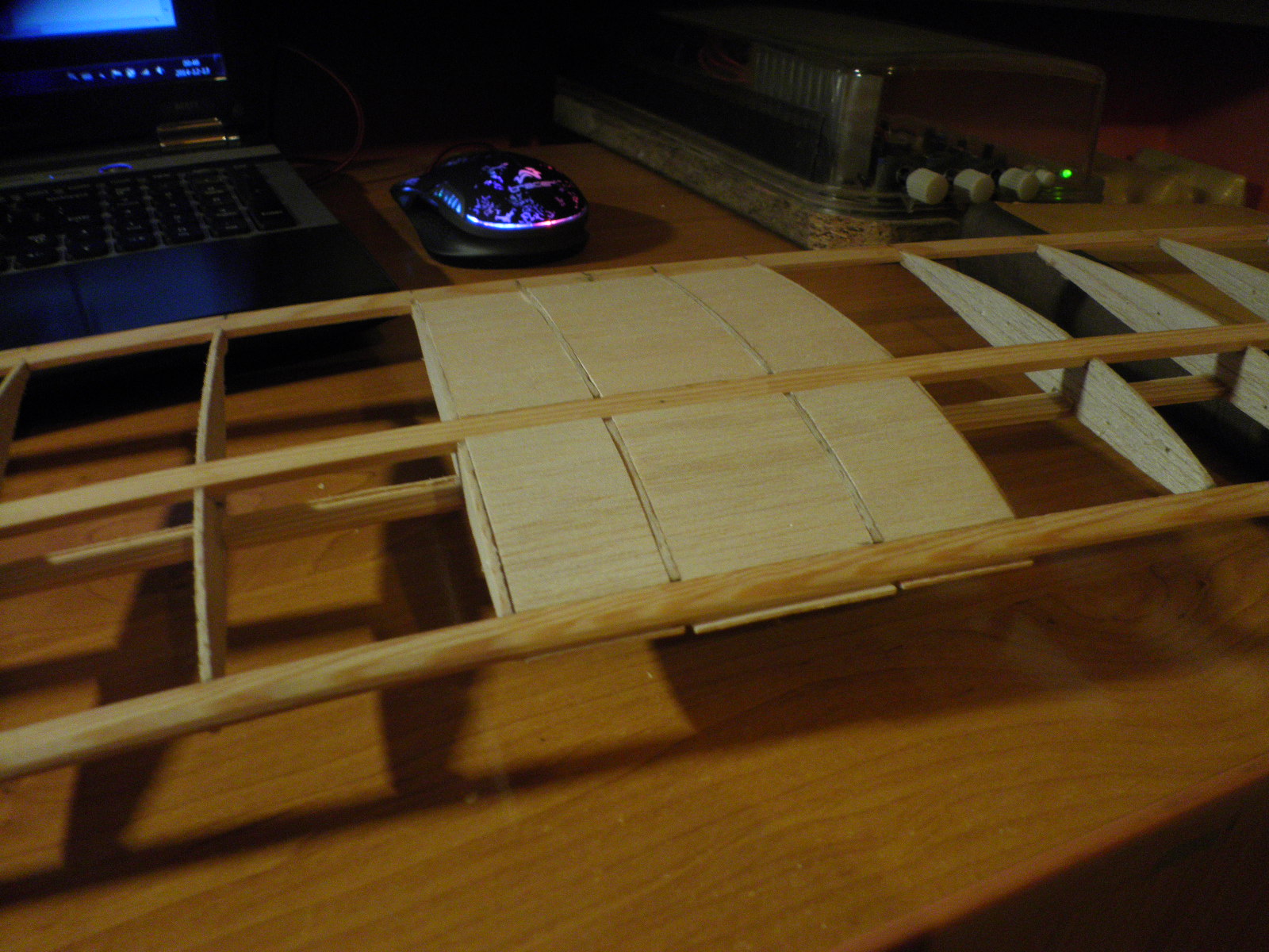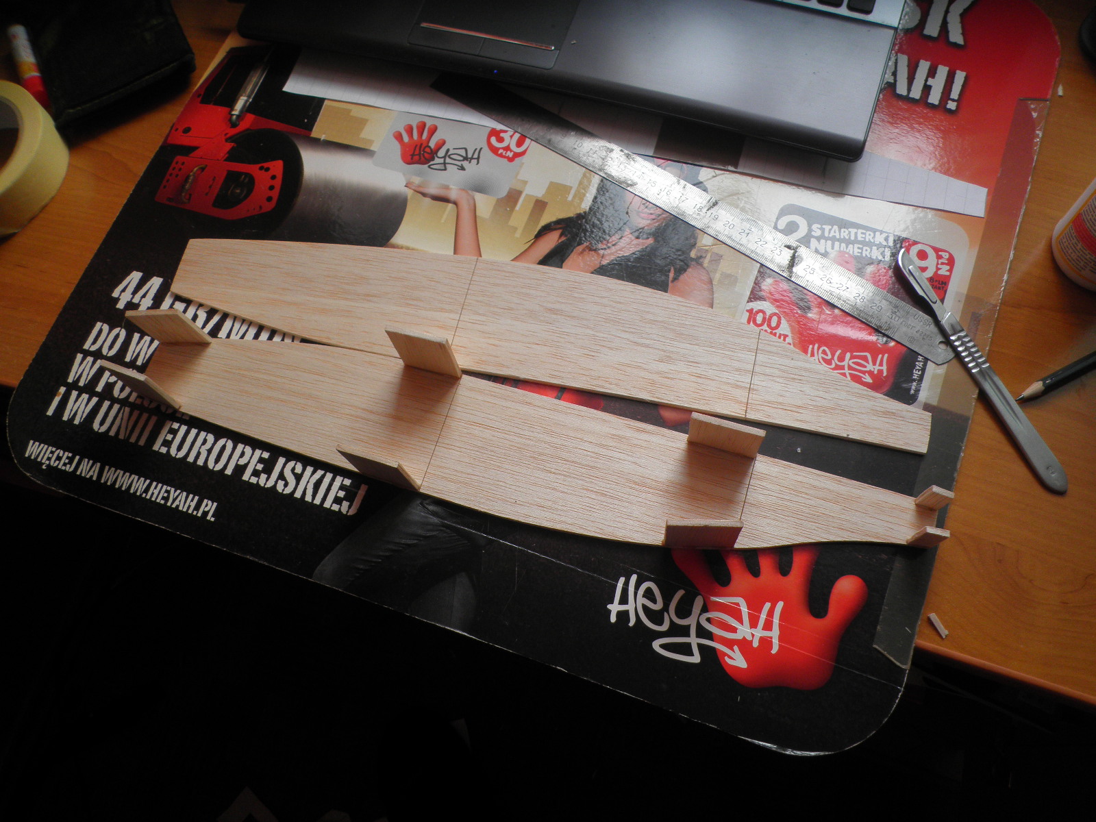 - Chciałbym uzyskać obłą, opływową linie kadłuba, czyli próba z gięciem balsy :)