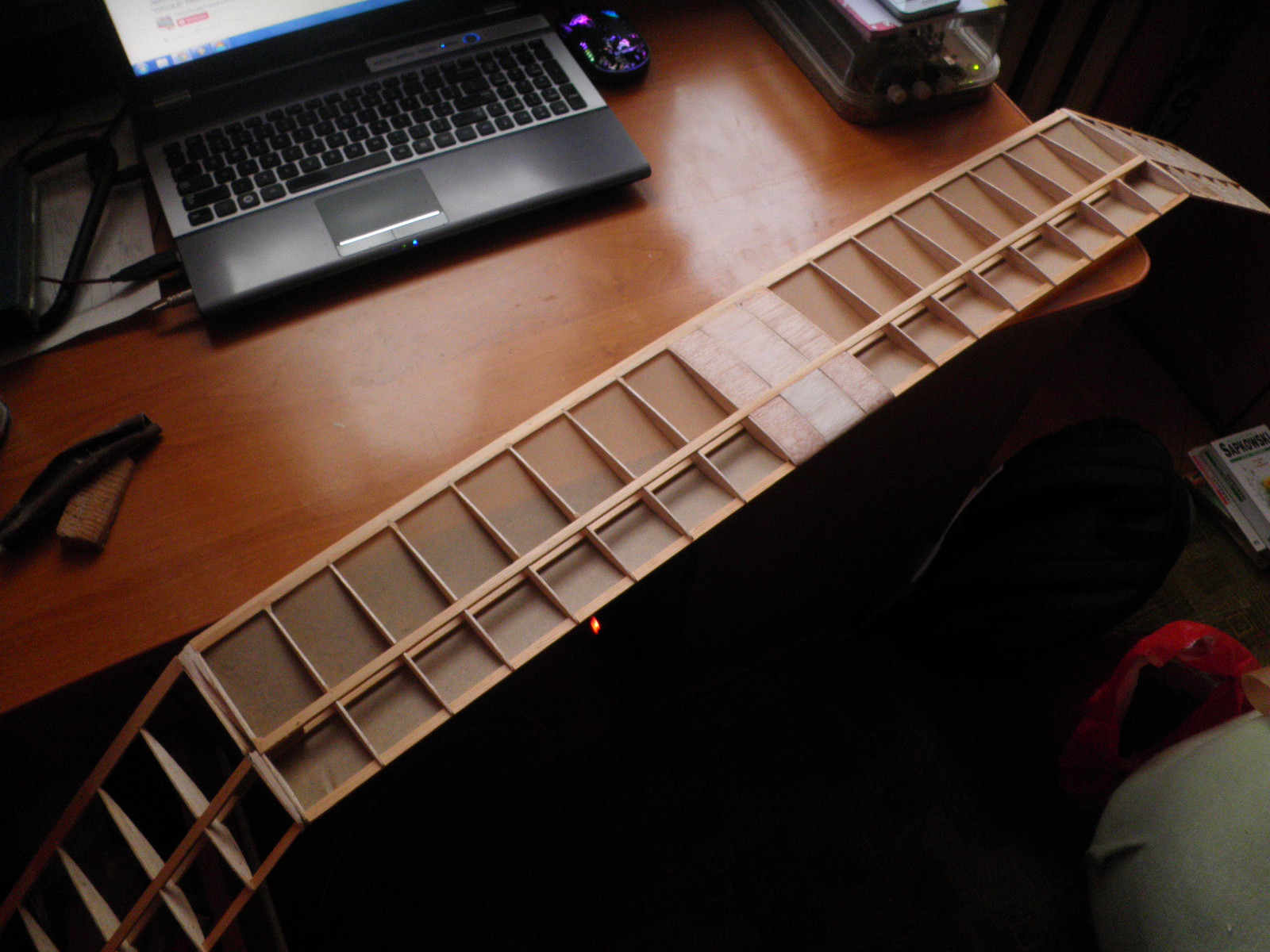 Skrzydła bardzo się usztywniły po pokryciu, myślałem że bez kesonu będzie tragedia, czeka je jeszcze cellonowanie ;)
