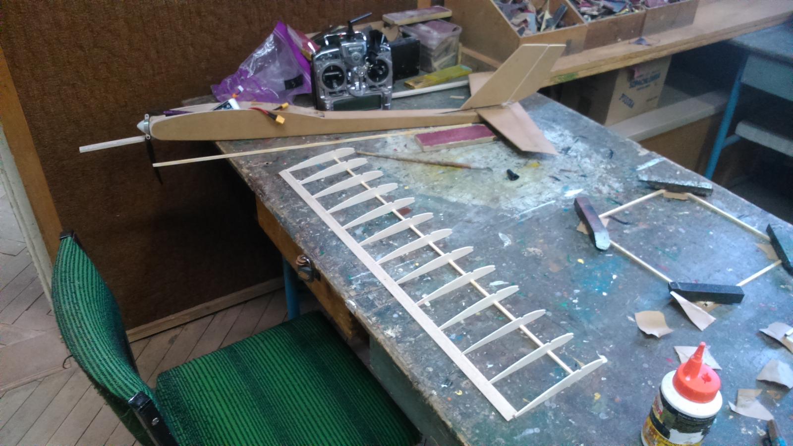 Witam. Zacząłem budowę modelu Motoszybowca według własnego pomysłu jedynie kadłub powstał z planów szybowca znajdującego się w modelarni. Skrzydło będzie konstrukcyjne o rozpiętości 200cm + końcówki. Centropłat 70cm i uszy po 65cm.