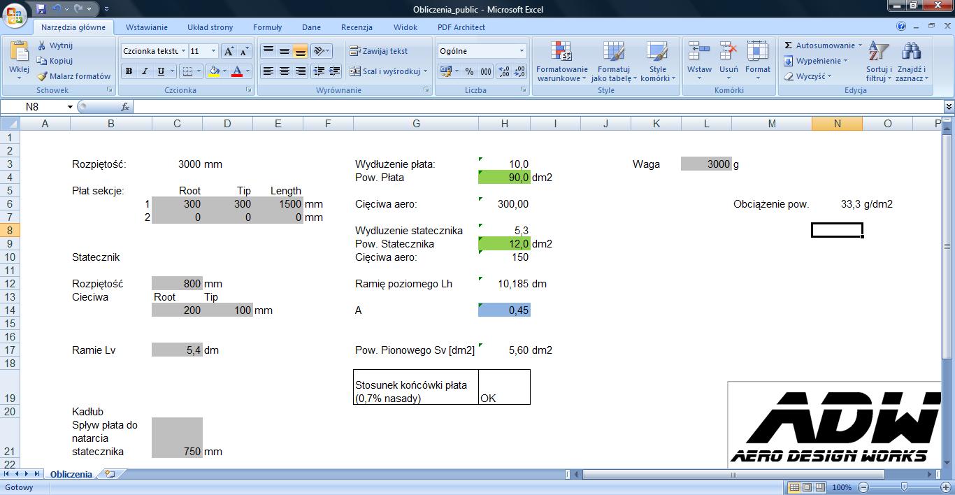 zaktualizuję arkusz o właściwą wartość Lv - da nam to pojęcie po wymaganej powierzchni statecznika pionowego.