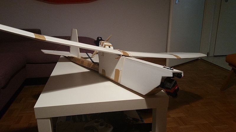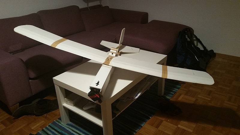 Przy cięciwie 300mm i rozpiętości 3000mm mamy powierzchnie 90dm2, do tego dochodzi usterzenie, które na ten moment jest dla mnie zagadką.