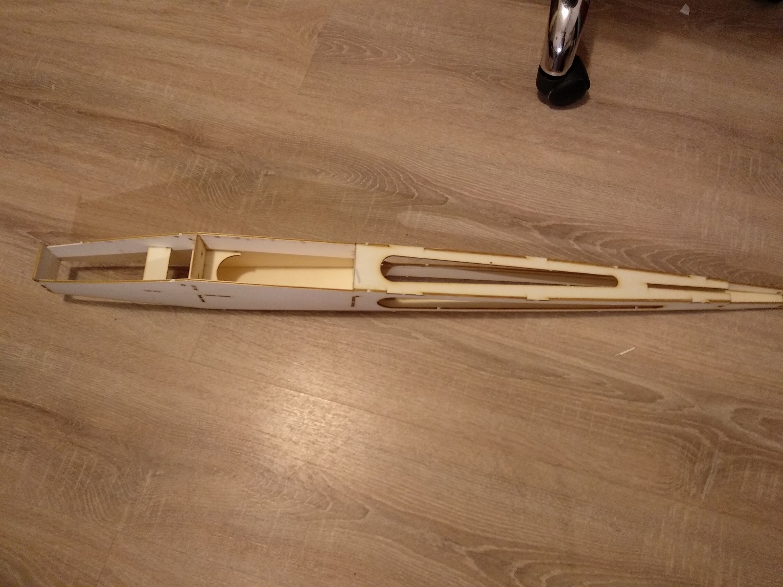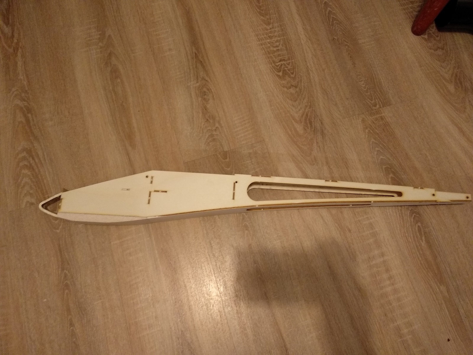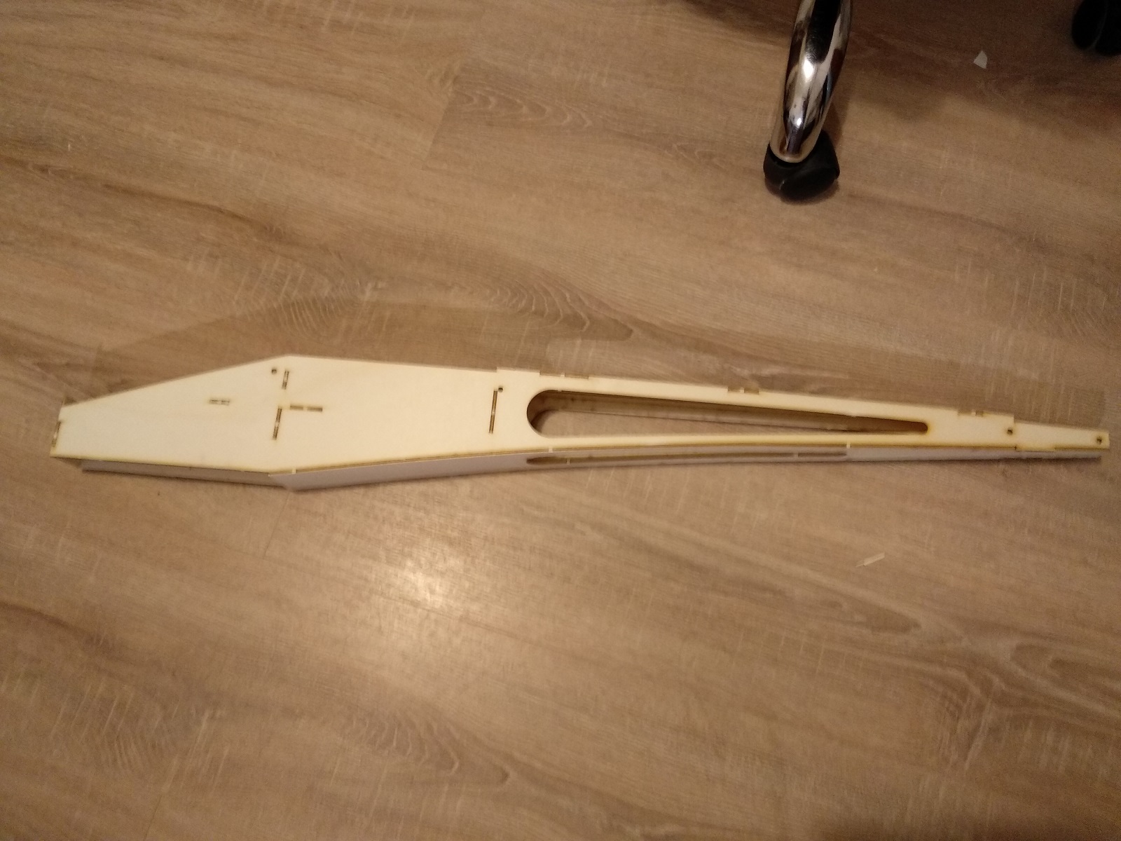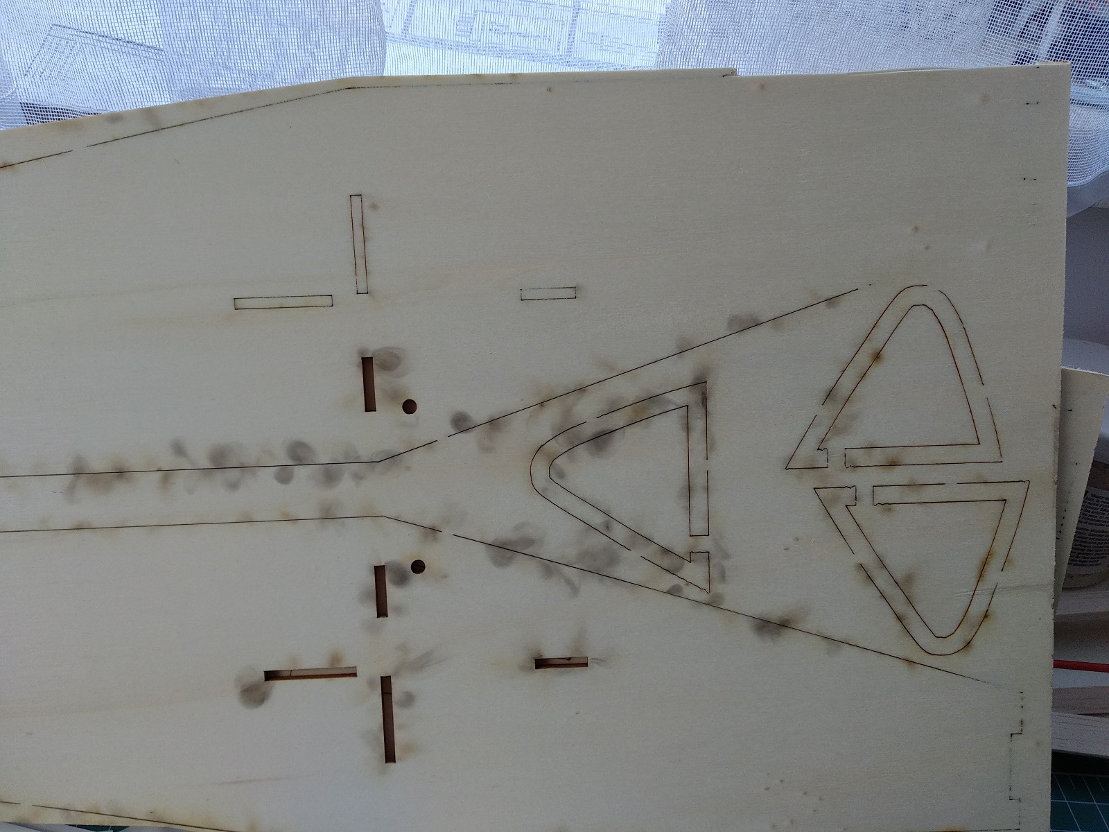 Plany przerysowałem i przygotowałem formatki, kadłub poszedł na laser, żeberka na frezarkę.
