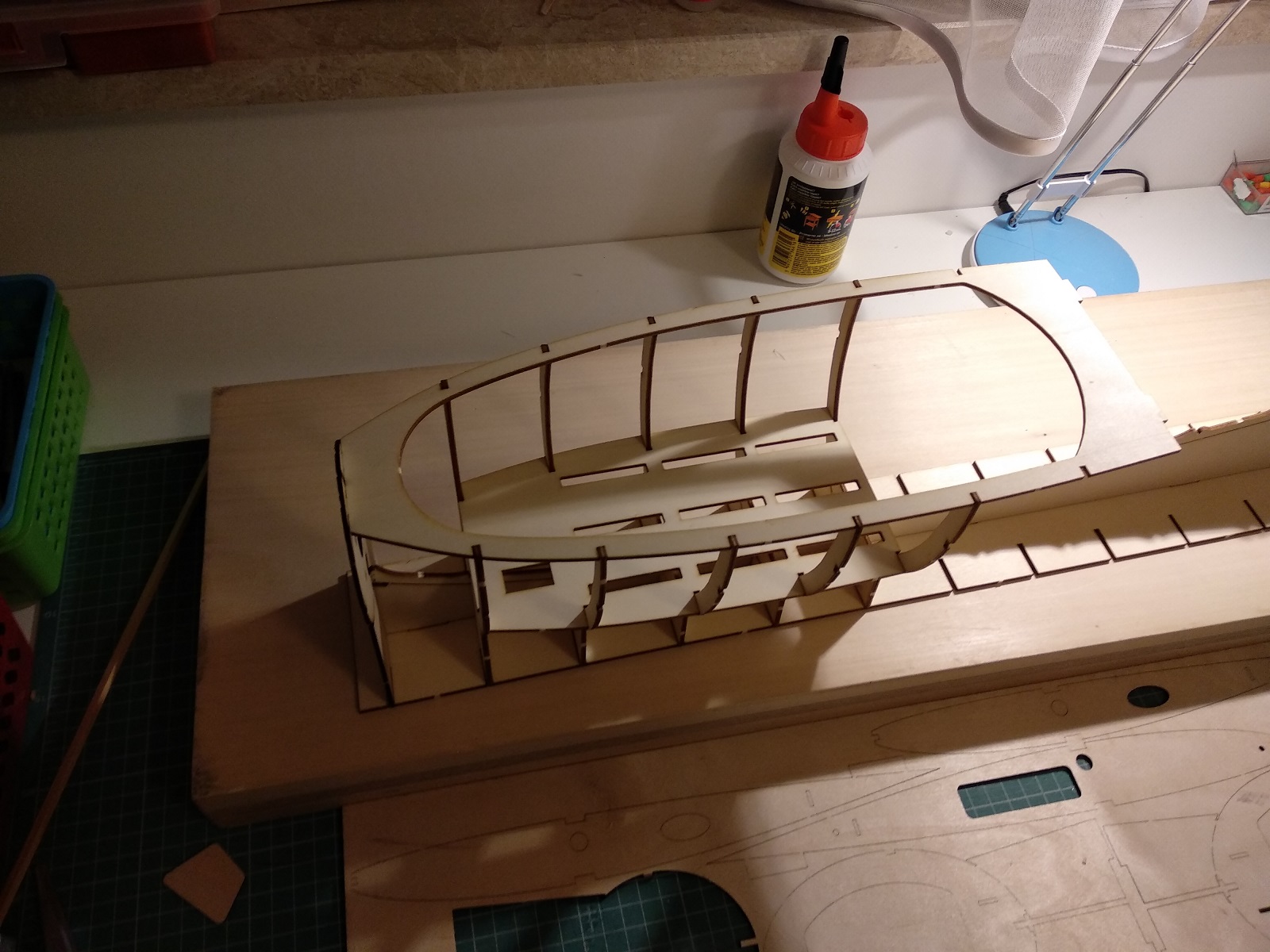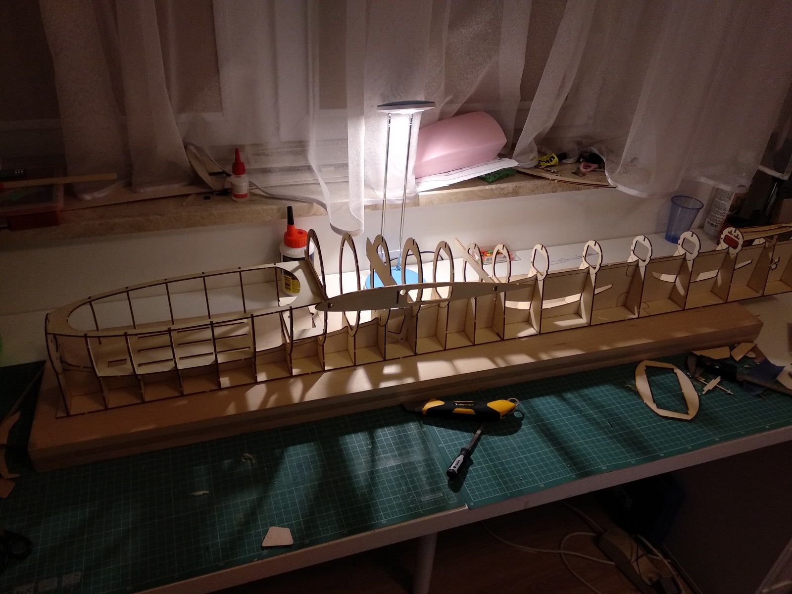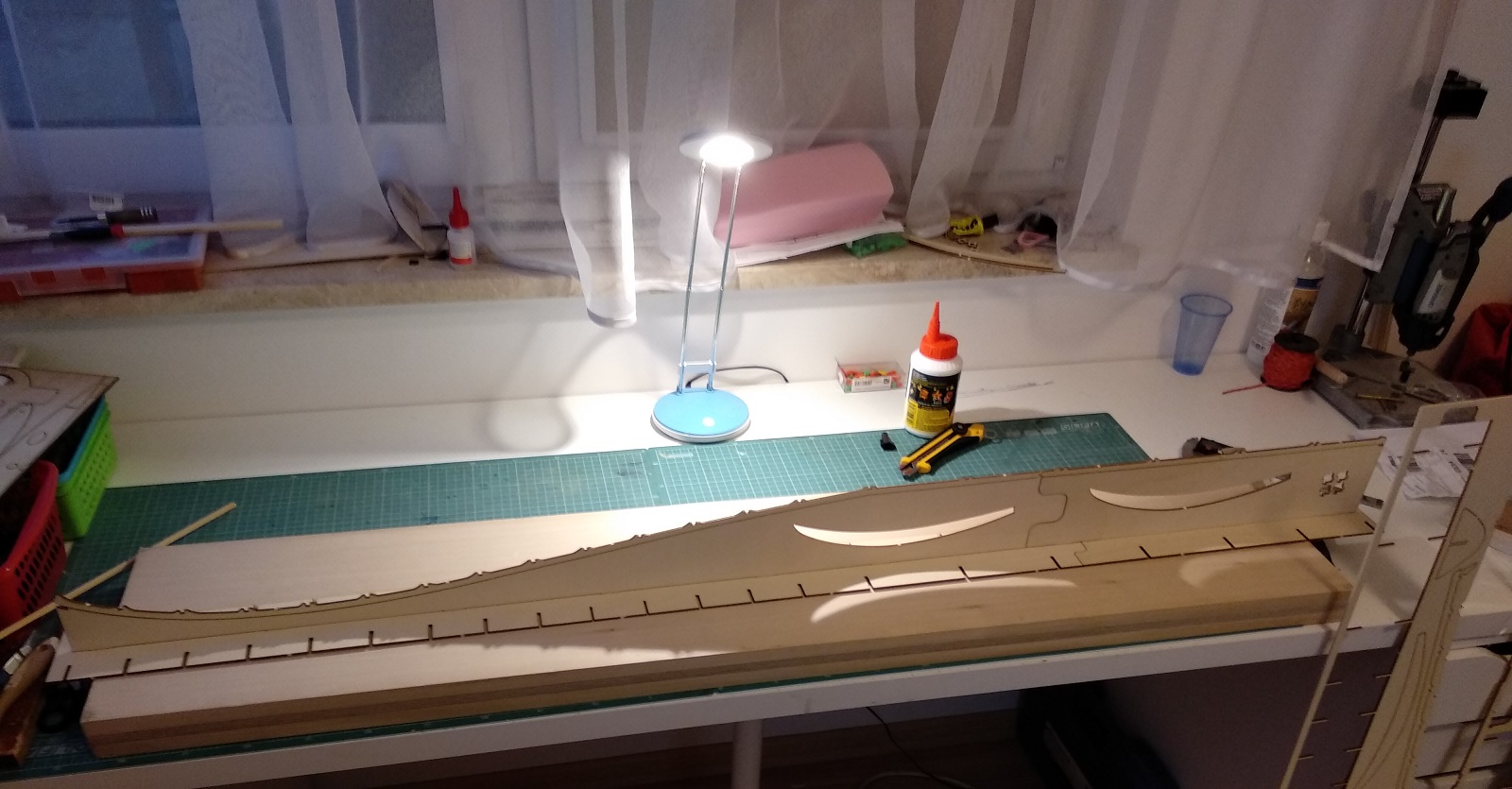 Ale do rzeczy, zacząłem od sklejenia podstawy i stępki.
