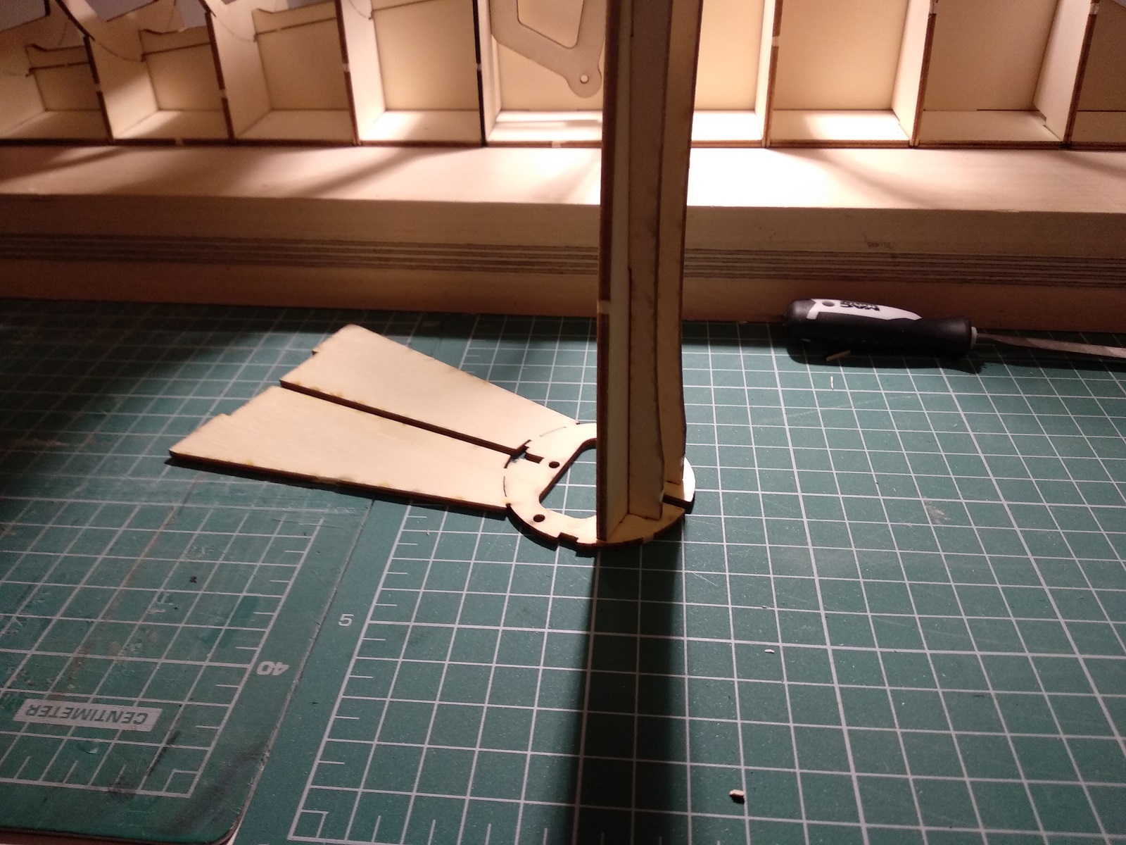 Można przesunąć o jeden wcześniej, i dokleić listewki mocujące, ja zobaczę, jak już wzmocnię półkę i wytrasuję otwory na serwa, czy nie wystarczy zrobić otworu w półce na prowadzenie śrubokręta.