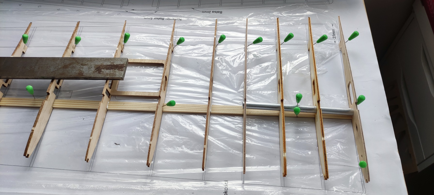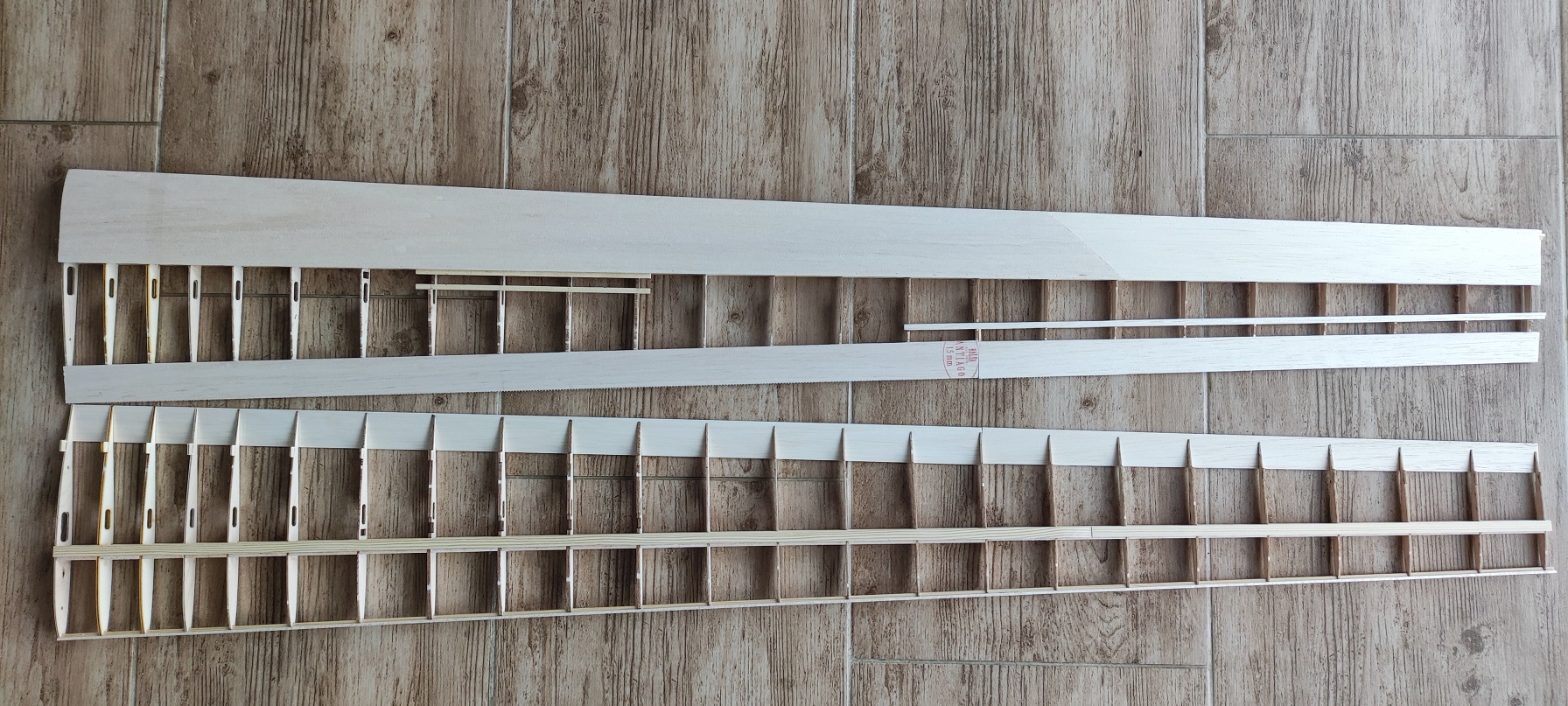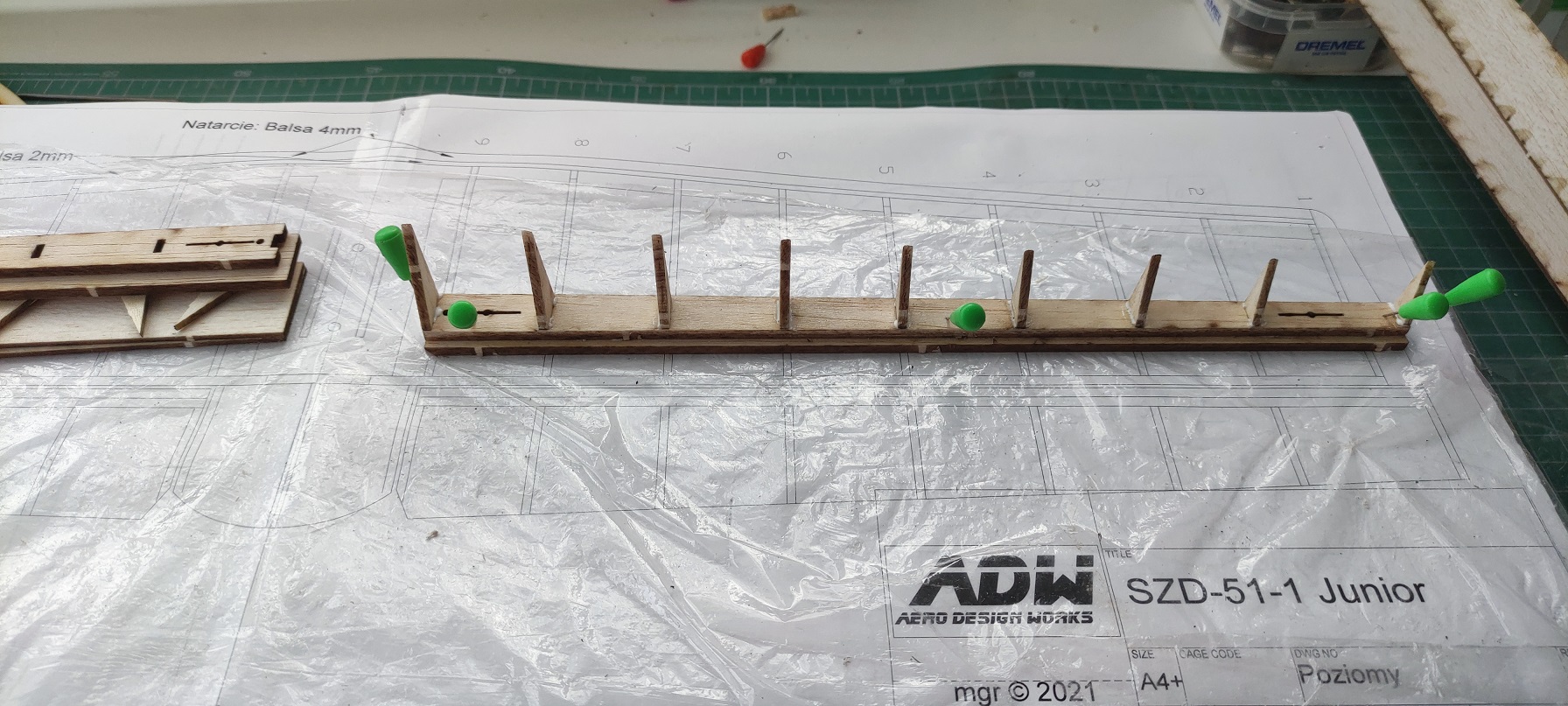 A tu widoczne paski balsy 5mm - natarcie które będzie szlifowane w trójkąt.