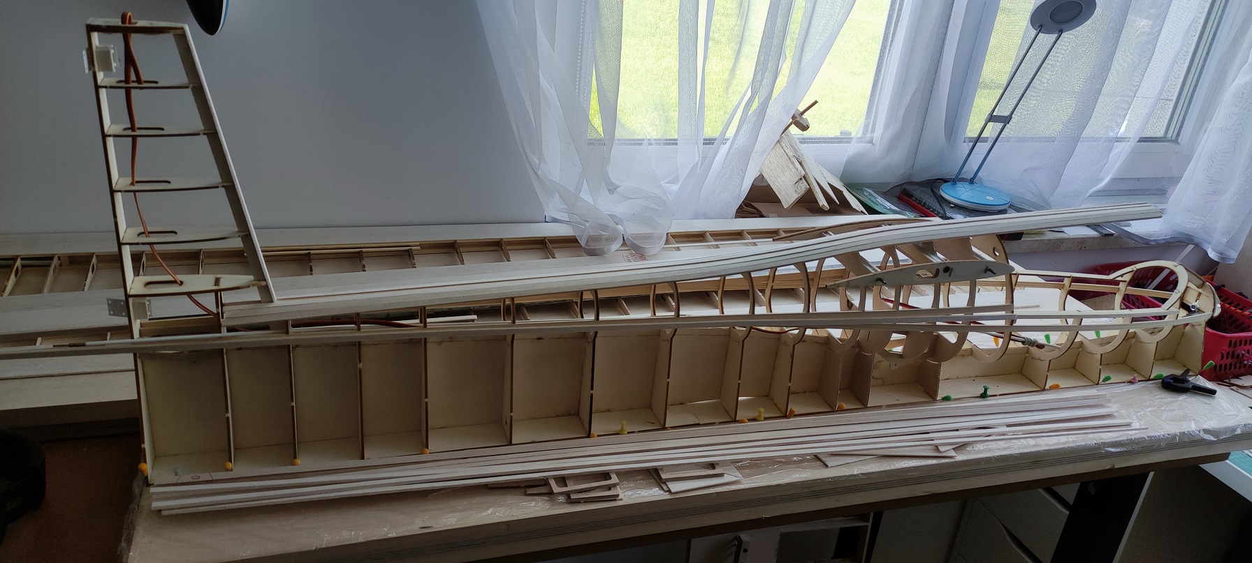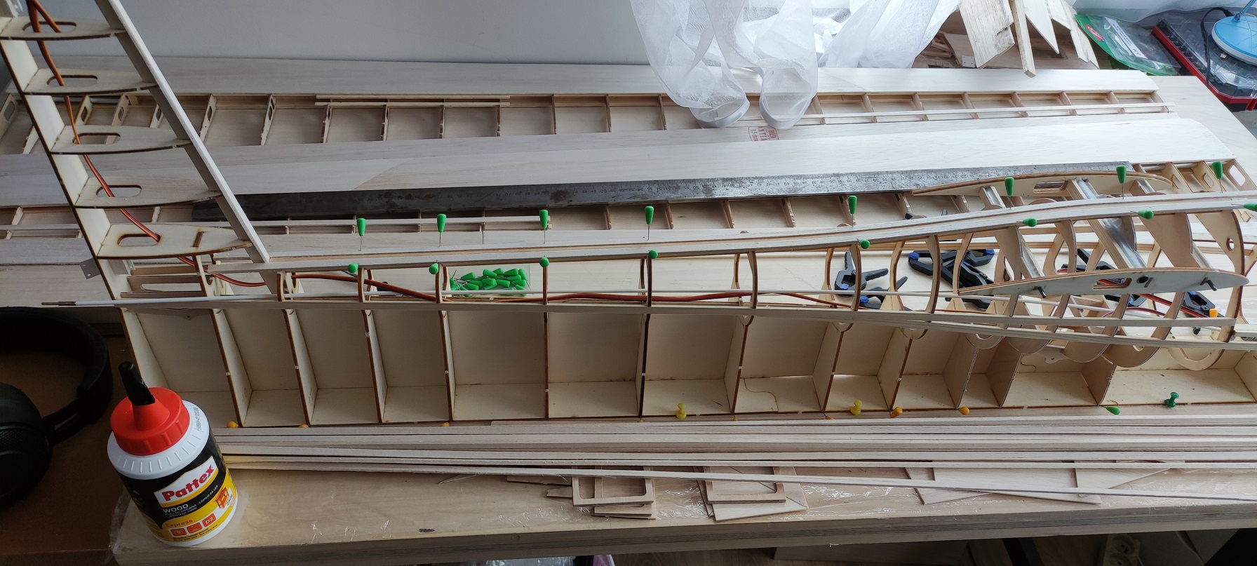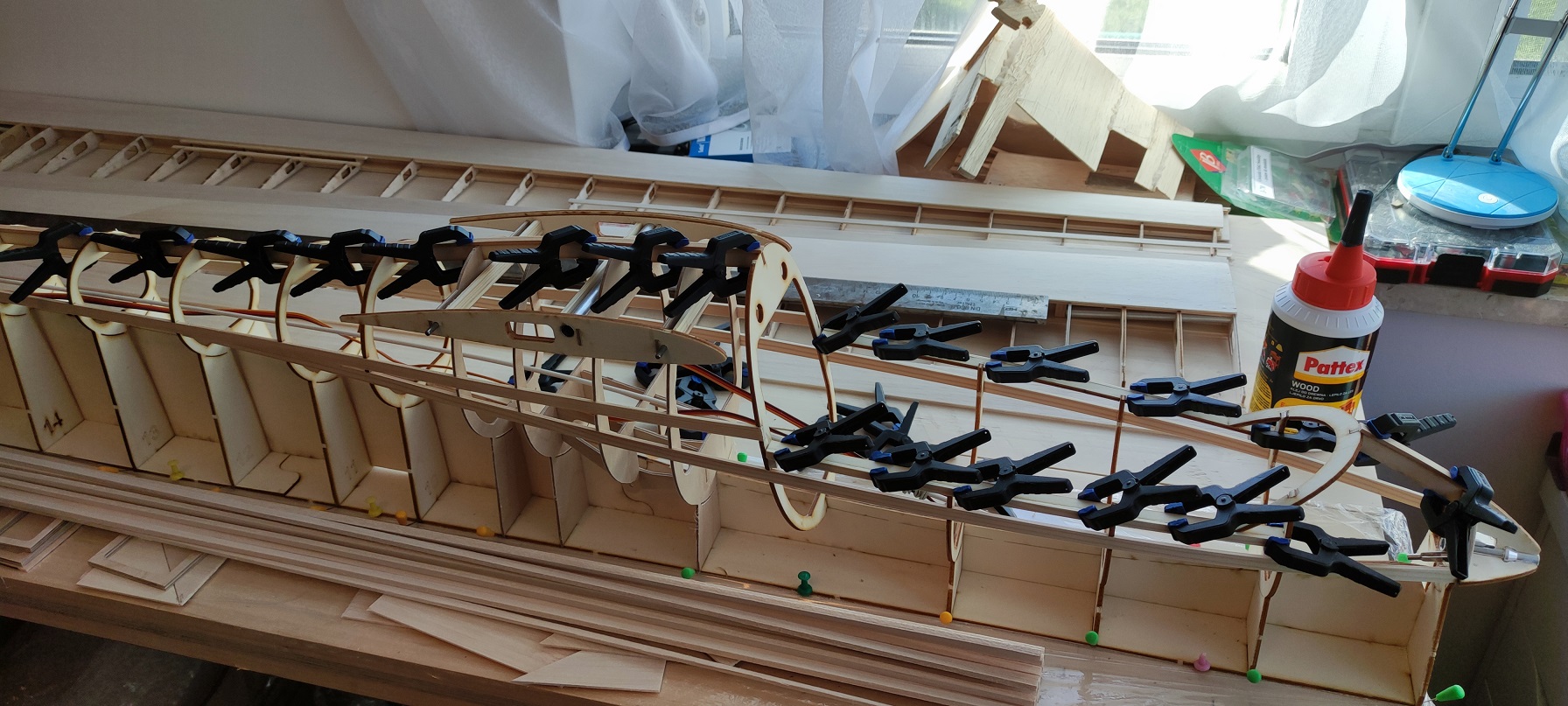 A tu widoczne paski balsy 5mm - natarcie które będzie szlifowane w trójkąt.