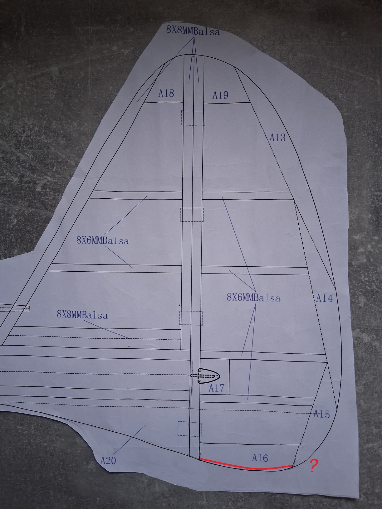 Dalsze niewielkie zmiany. Nie podobał mi się kształt dolnej części steru kierunku. Według planów Pichlera ten ster jest narażony na uszkodzenia podczas przyziemienia. Zmieniłem kształt płozy ogonowej