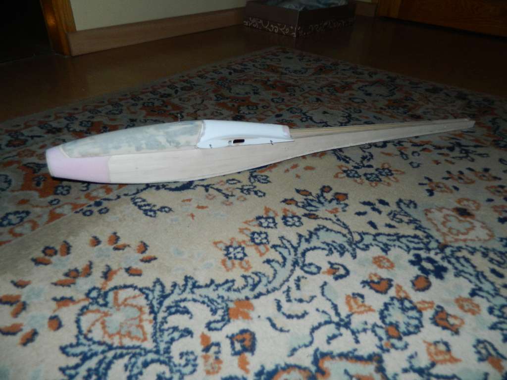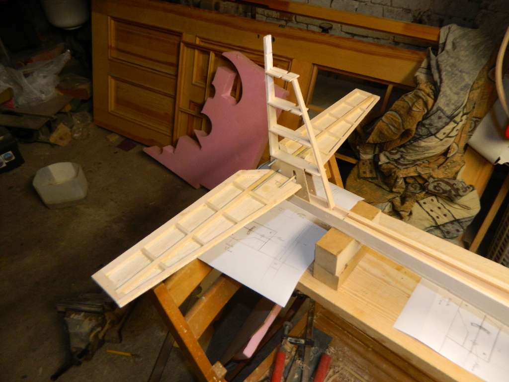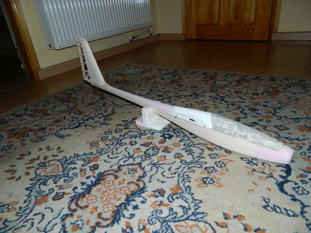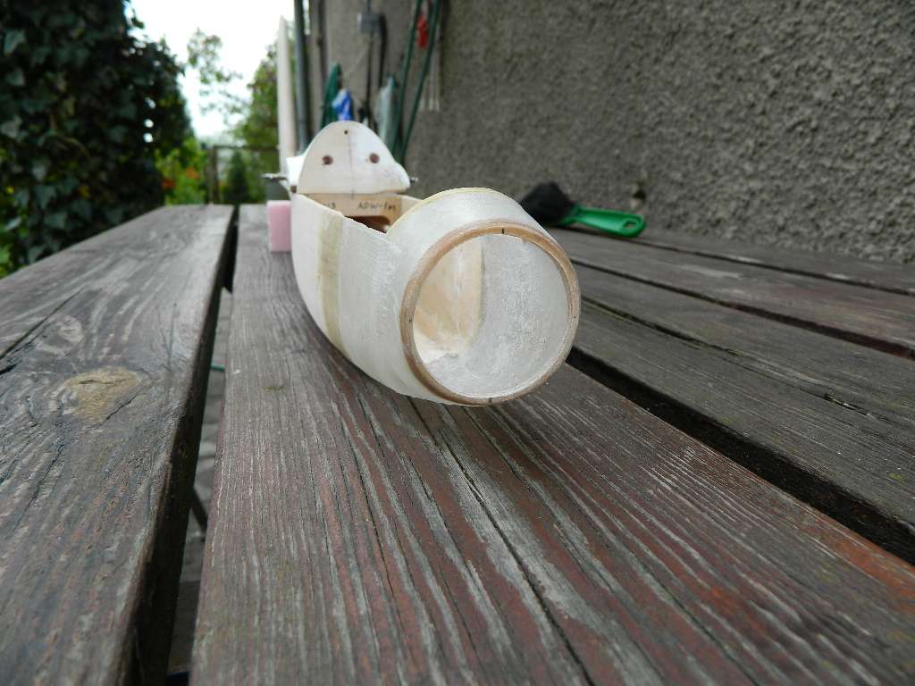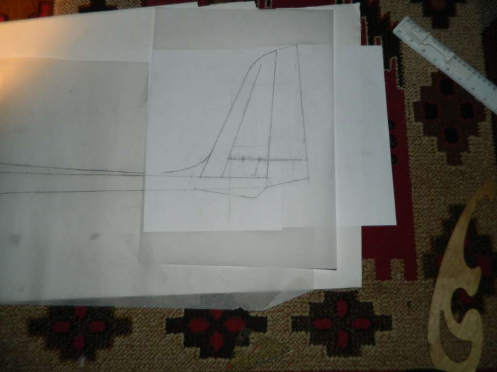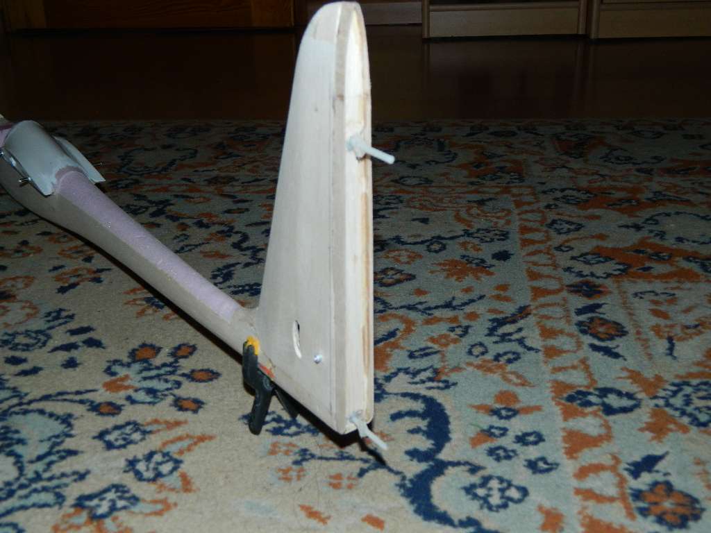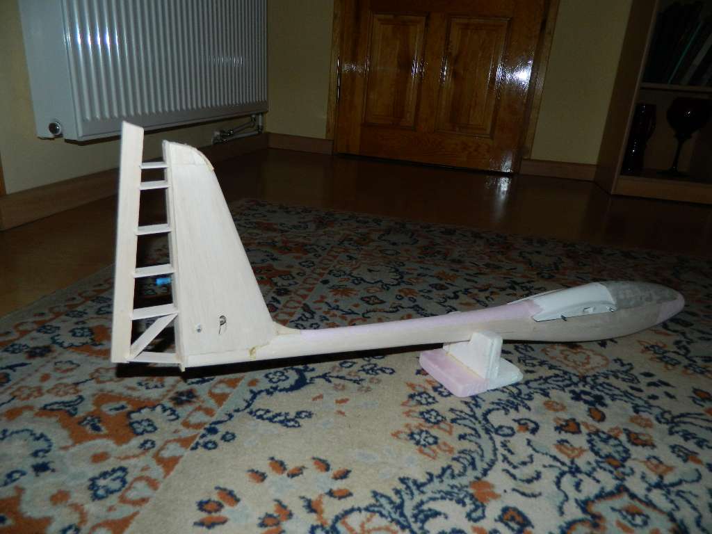 Jak zwykle ;) .....wstępna przymiarka steru kierunku. Kadłub "wyrzeźbiony" do jako takich kształtów.