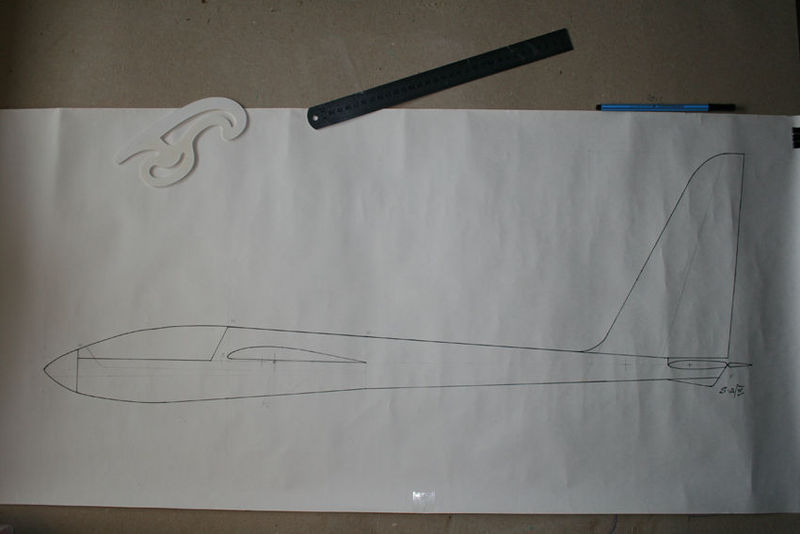 Na rysunku jest to co chcę zbudować. Statecznik pionowy dość duży, ale trzeba pamiętać, że nie ma lotek i kadłub jest nie za długi, choć wg moich obliczeń w normie.