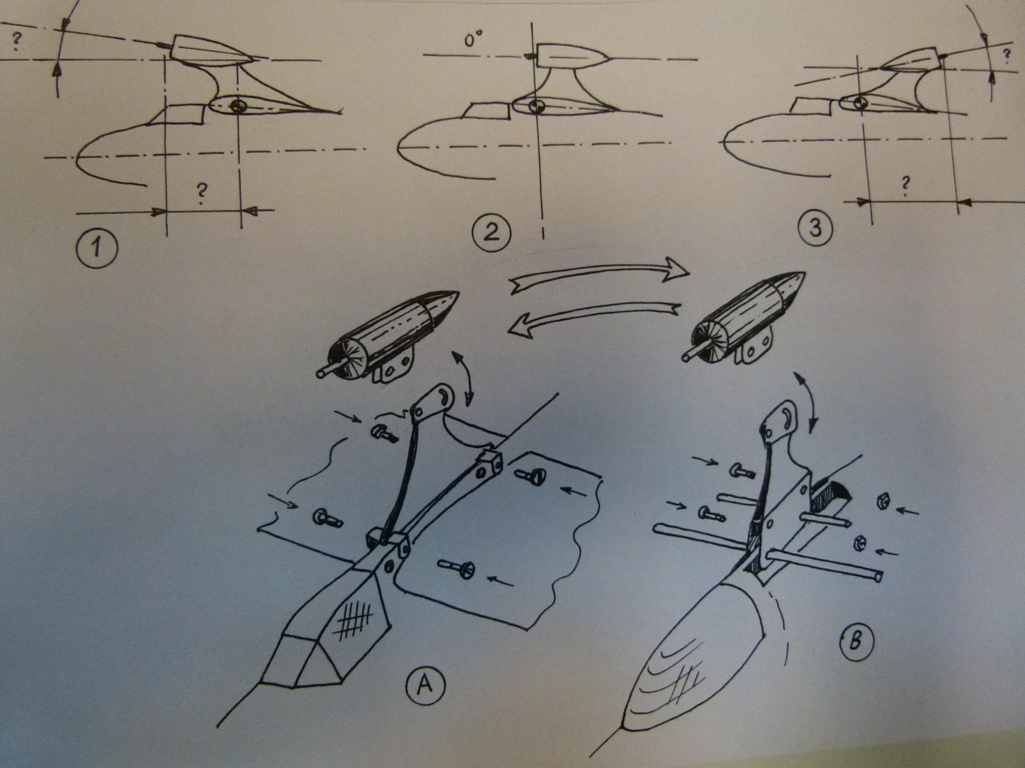 Wydaje mi się Pepciu, że na trzecim rysunku, wg tego co pisze Marek, oś silnika powinna przebiegać podobnie jak na rysunku pierwszym... Żeby uniknąć skłonu modelu przy pracującym silniku....