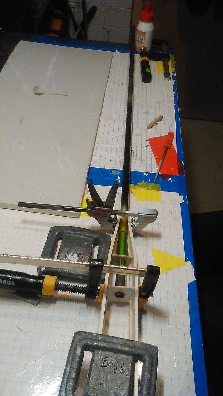 Belka ogonowa jeszcze nie przyklejona do wręg, ogonek zostanie jeszcze skrócony.