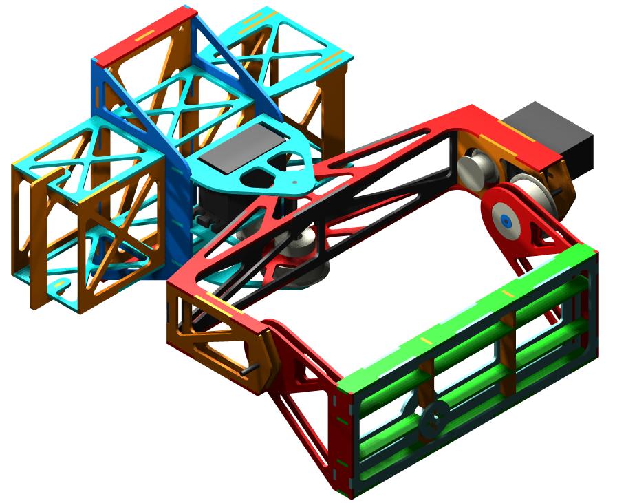 A tutaj gimbal pod aparat Sony, z serwami i przekładniami (bez pasków), z pojemnikiem na pakiet 4s 5000mAh.