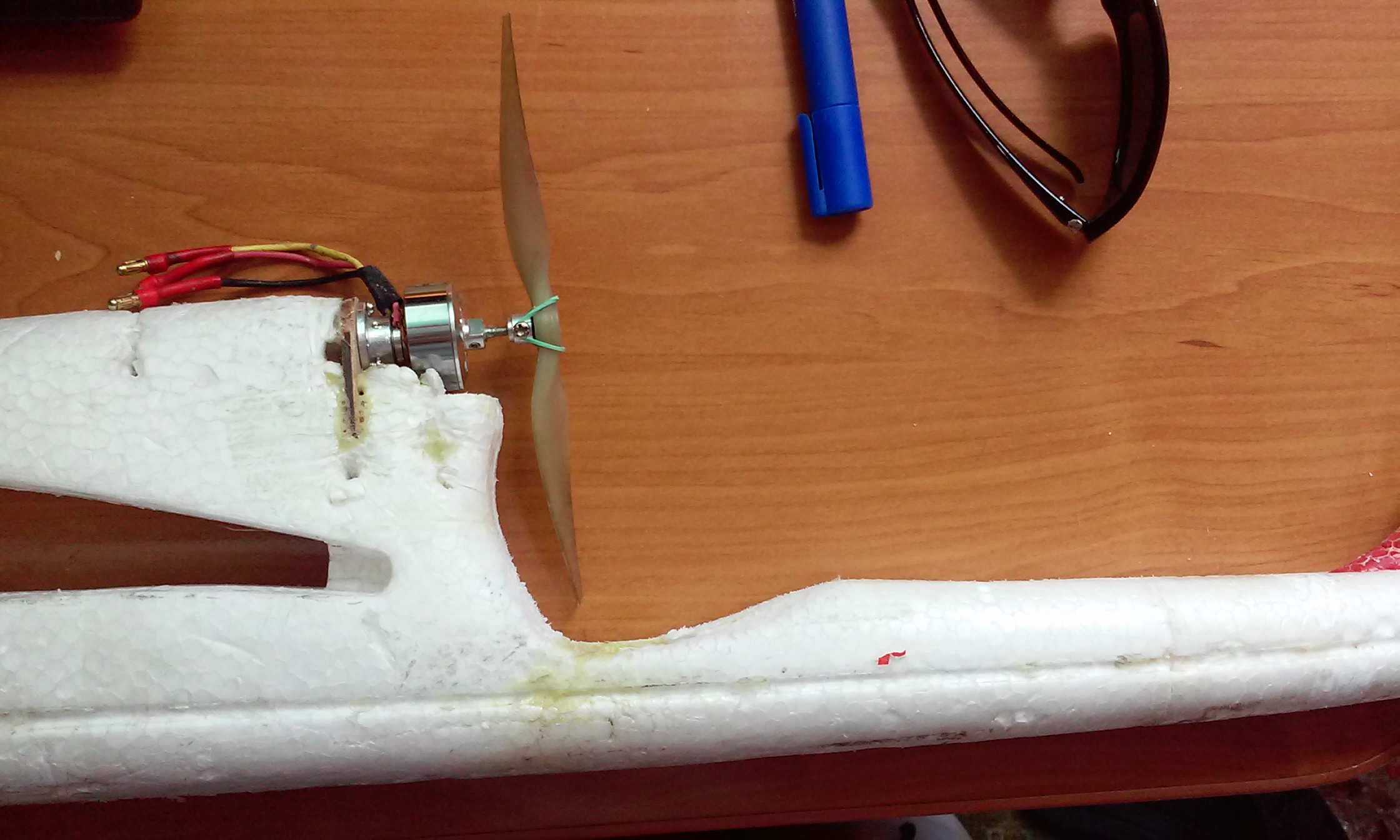 Śmigło, - nawet nie wiem, z 6x5,5, przy tym silniku na kalkulatorze ciągu wychodzą cyrki, więc wszystko do sprawdzenia