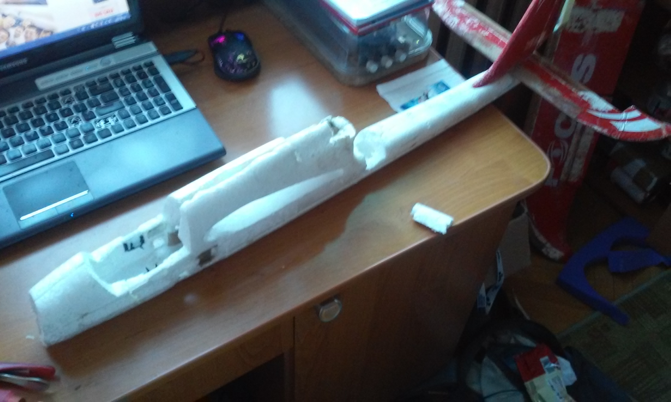 Jako że nic ze stajni się nie nadawało a AeroV1 trochę szkoda, postanowiłem coś stworzyć. Od kolegi dostałem praktycznie to co zostało z modelu Focus, planując stworzyć gipsową formę a następnie pełną replikę tyle że z laminatu. Pomysł porzuciłem, ze względu na utrudnione rozwiązanie mocowania skrzydeł i parę innych dupereli mi się nie podobało, ale ten pomysł jeszcze wróci do realizacji