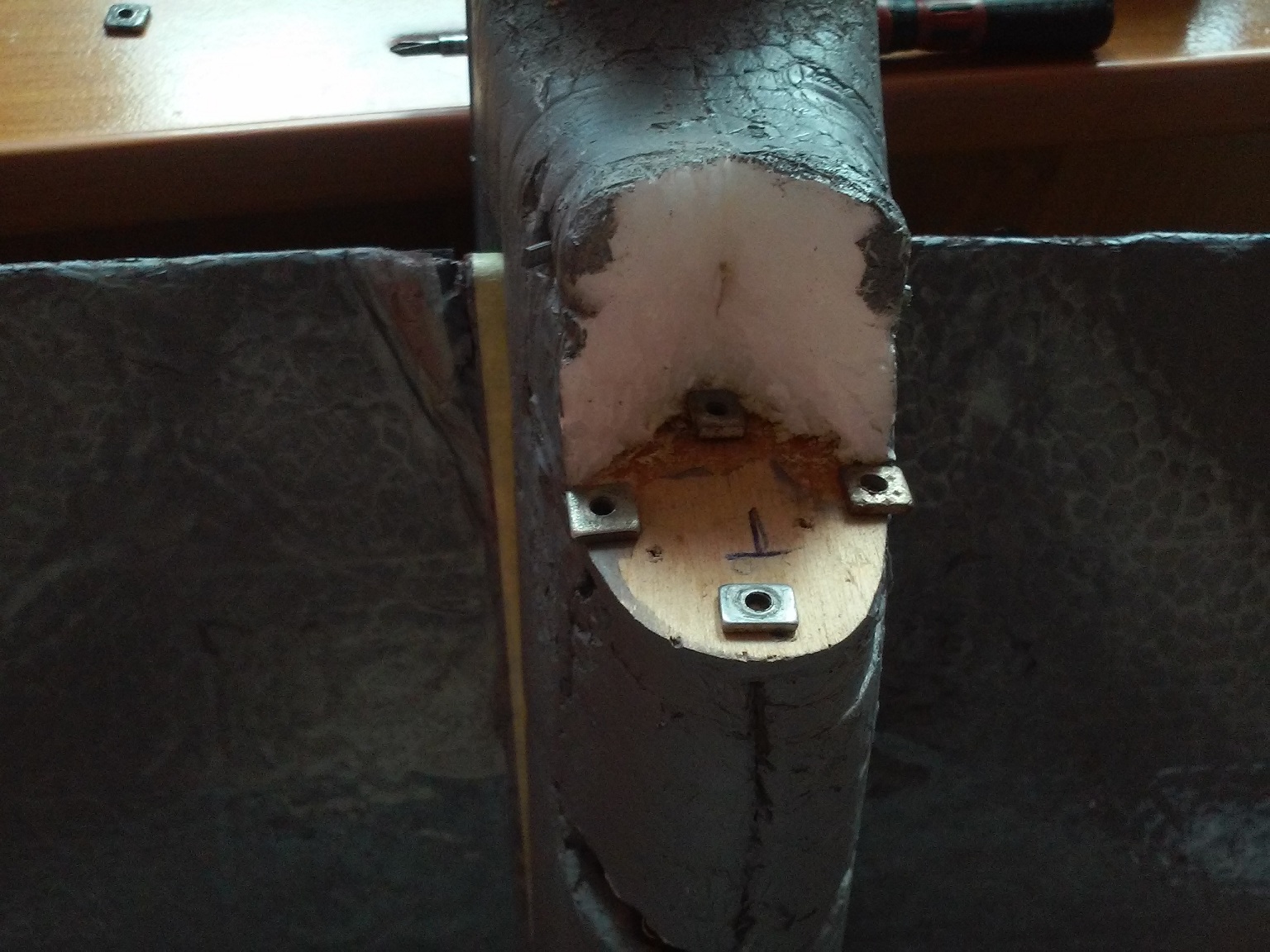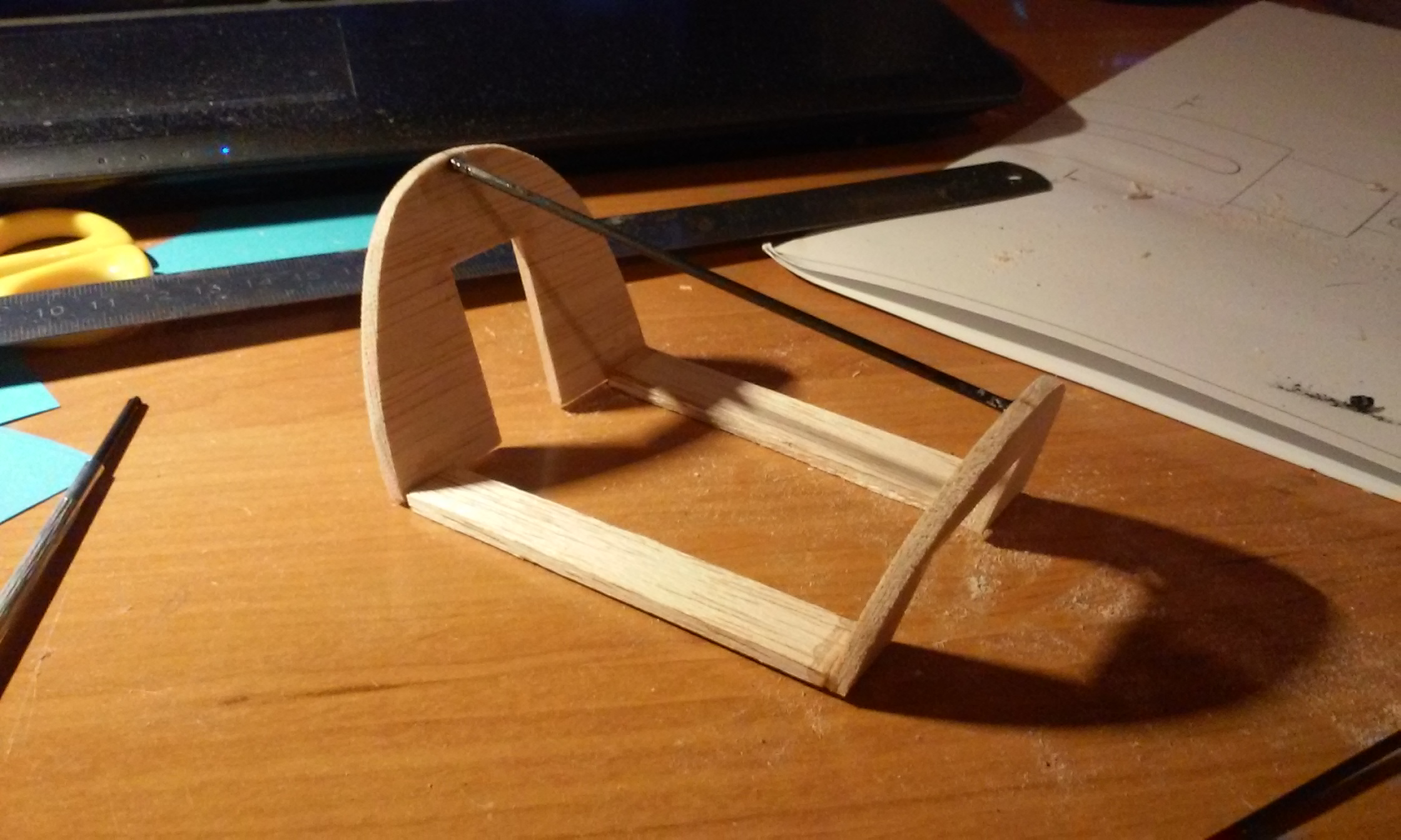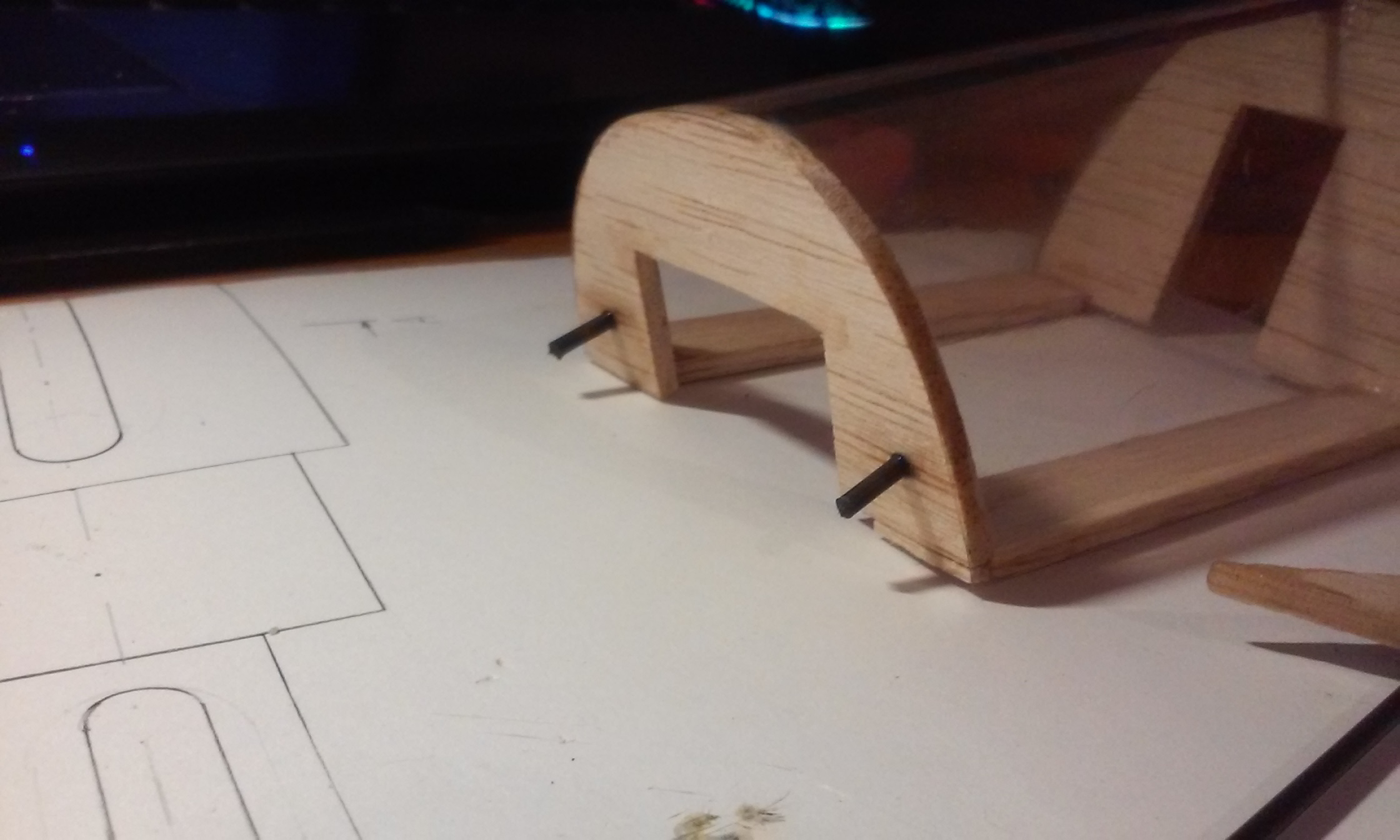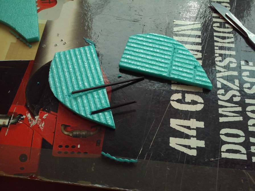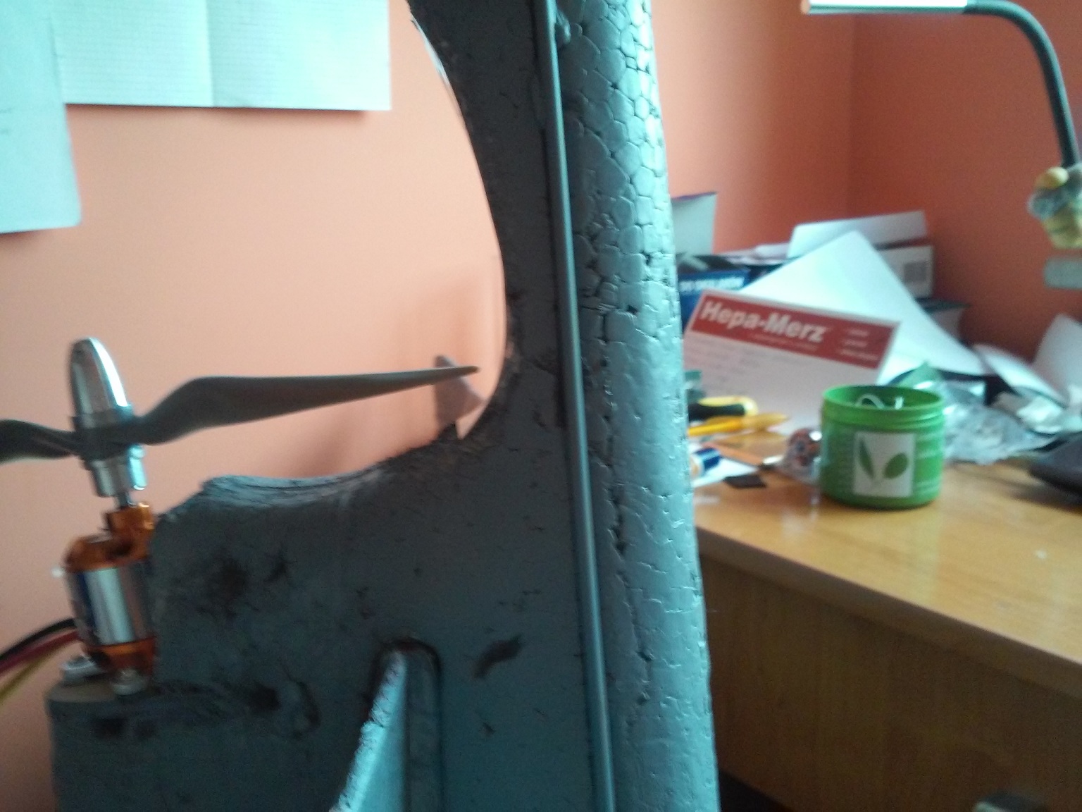 Kolejnym etapem prac jest wstawienie wręgi silnikowej (sklejka ok 4mm) i wklejenie na soudal 66A. No i z powrotem problem co ze śmigłem, decyduje się na wycięcie tego co wkleiłem, jednak staram się zrobić to estetyczniej niż poprzedni właściciel