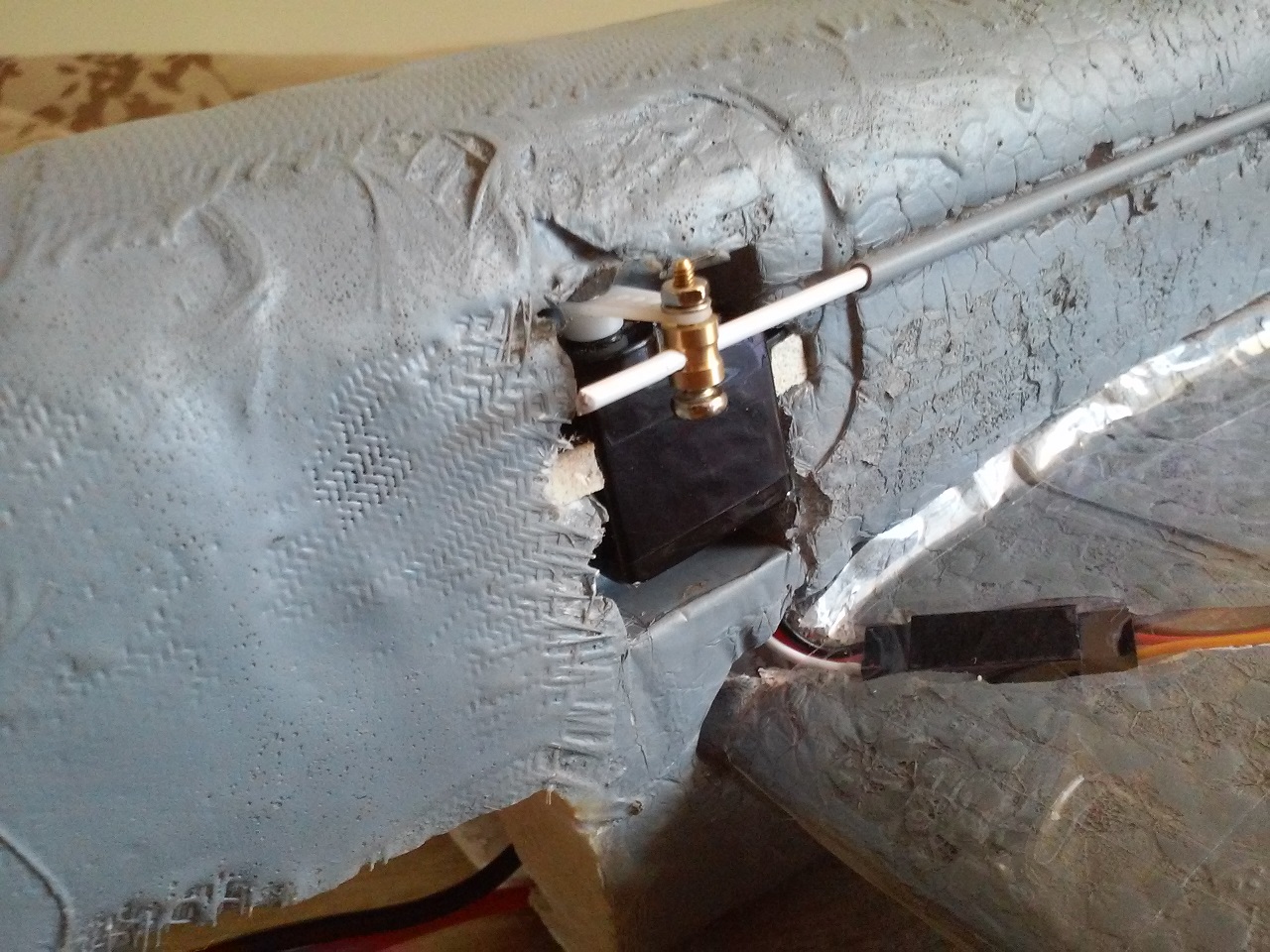 Bowden przyłożyłem do kadłuba, złapałem paroma kroplami przy stateczniku, następnie naciągnąłem z umiarem, i dalej skleiłem CA wzdłuż jego linii przy kadłubie. Efekt zadowalający, ogon prosty