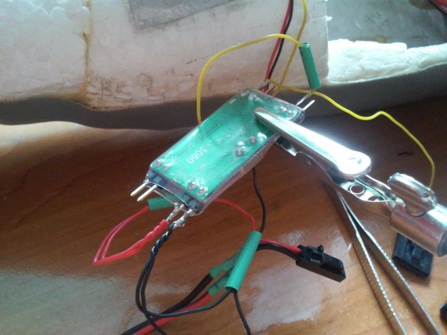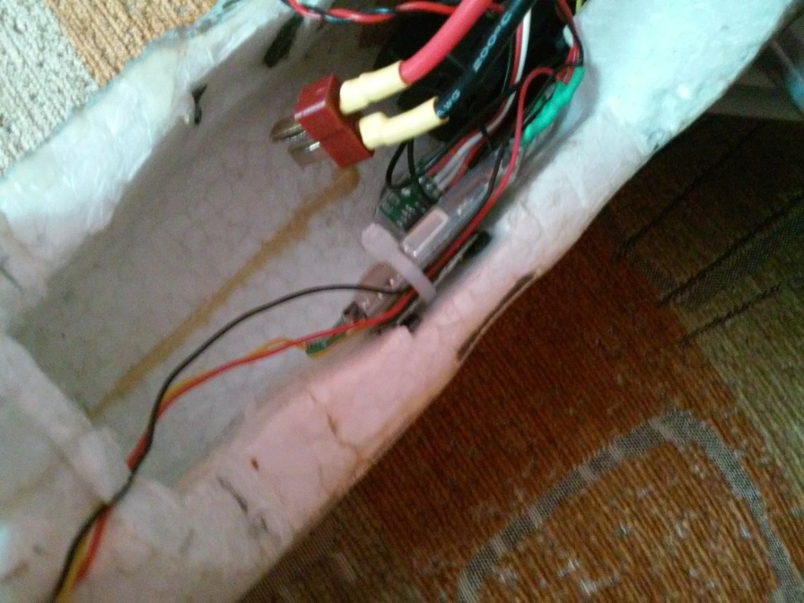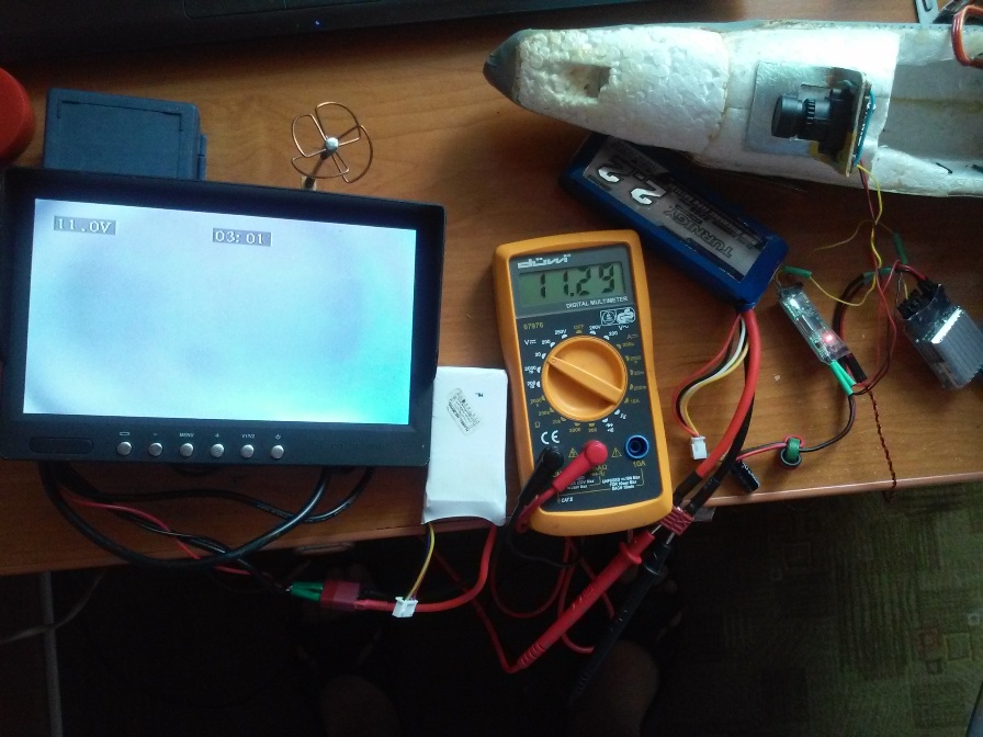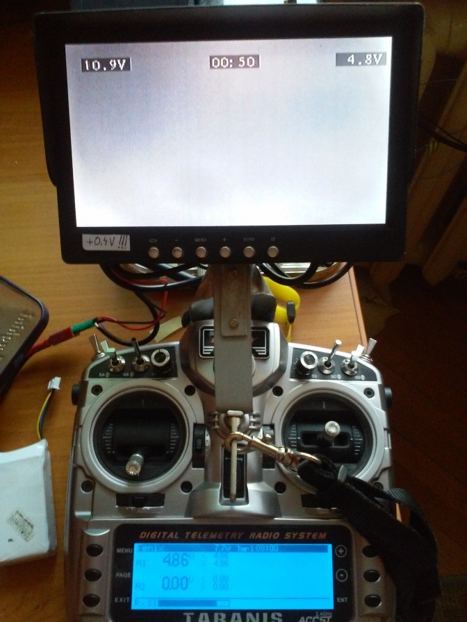 Tak wygląda ekran na nadajniku ( przy okazji wrzucę lepsze zdjęcia ) oraz instalacja na modelu, czyli zasilanie z jednego pakietu, pierścień ferrytowy oraz kondensator, aby uniknąć zakłóceń płynących z wspólnego zasilania.