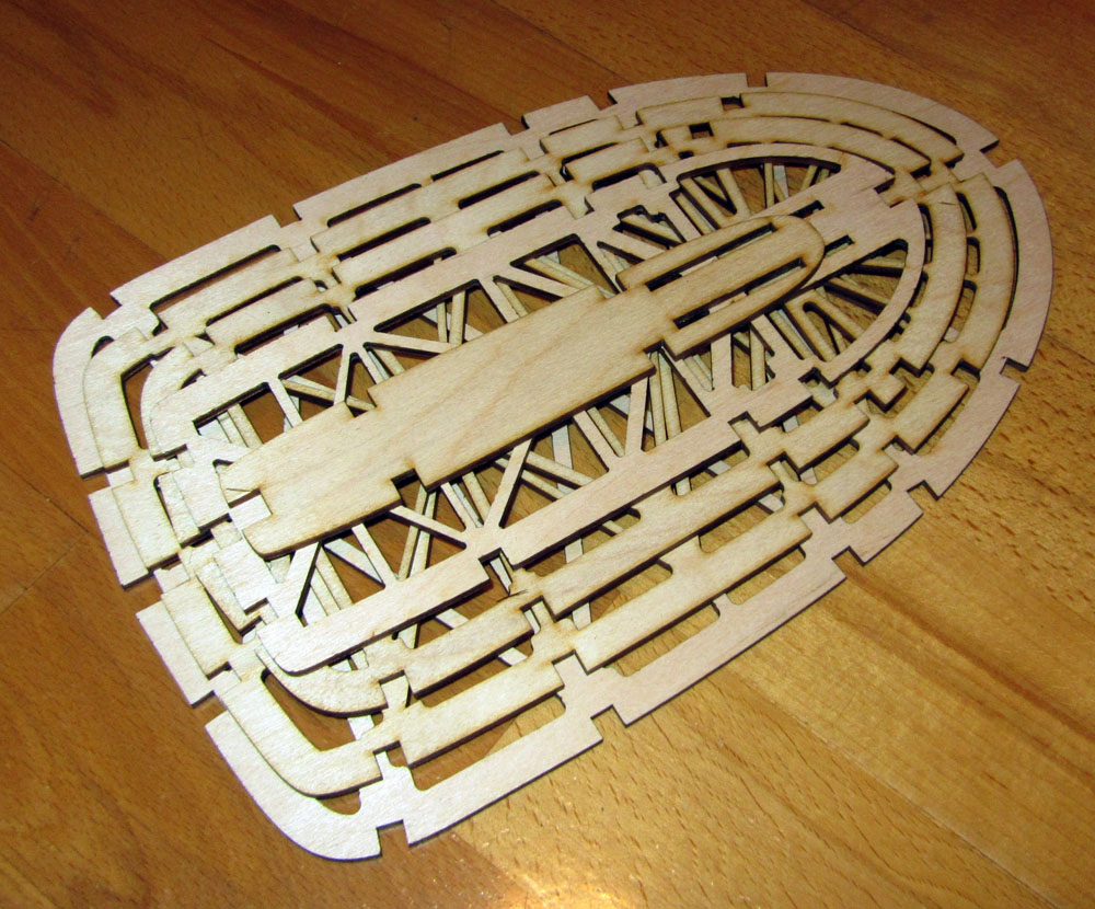 Wykonane ze sklejki 3mm, wymiary 1100x210x60.