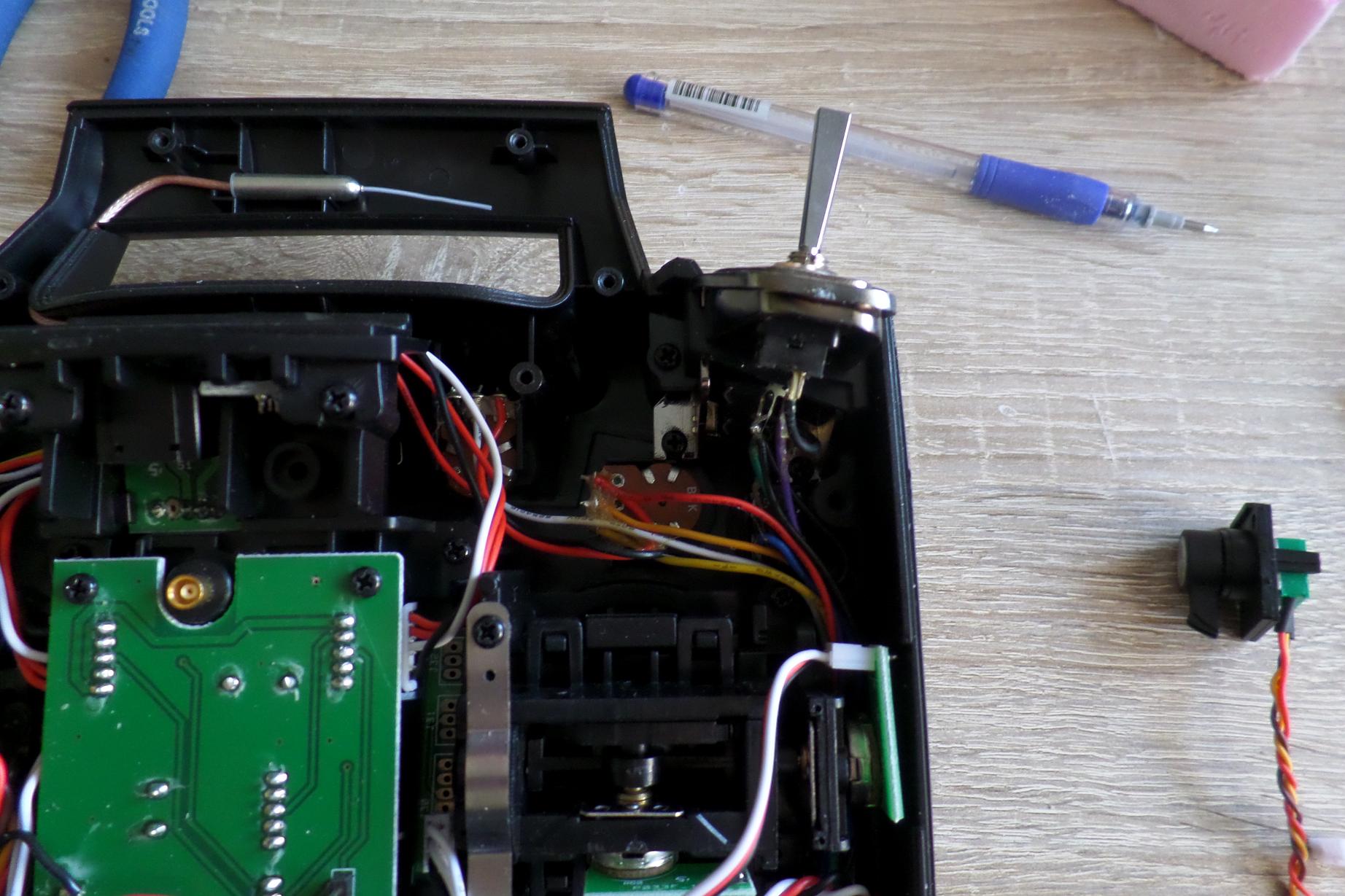 Postanowiłem przerobić moją 9XR tak aby miała jeden slider. Odbyło się to kosztem jednego z potencjometrów.