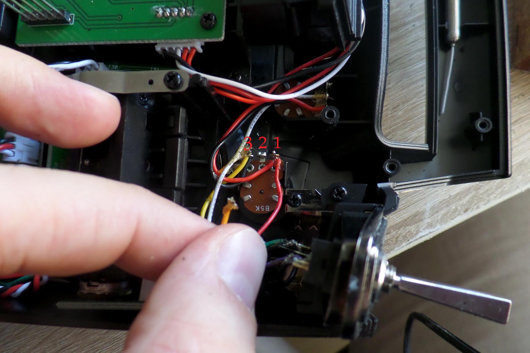 Następnie wy lutowałem środkowy przewód ze slidera.