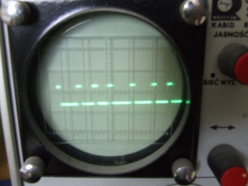 Zostało przyciąć wyświetlacz, wpakować to do radia, okablować... trochę roboty jeszcze jest. Ale najważniejsze, że żyje - i mój stary oscyloskop pokazuje taką piękną ramkę na wyjściu