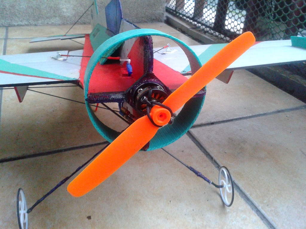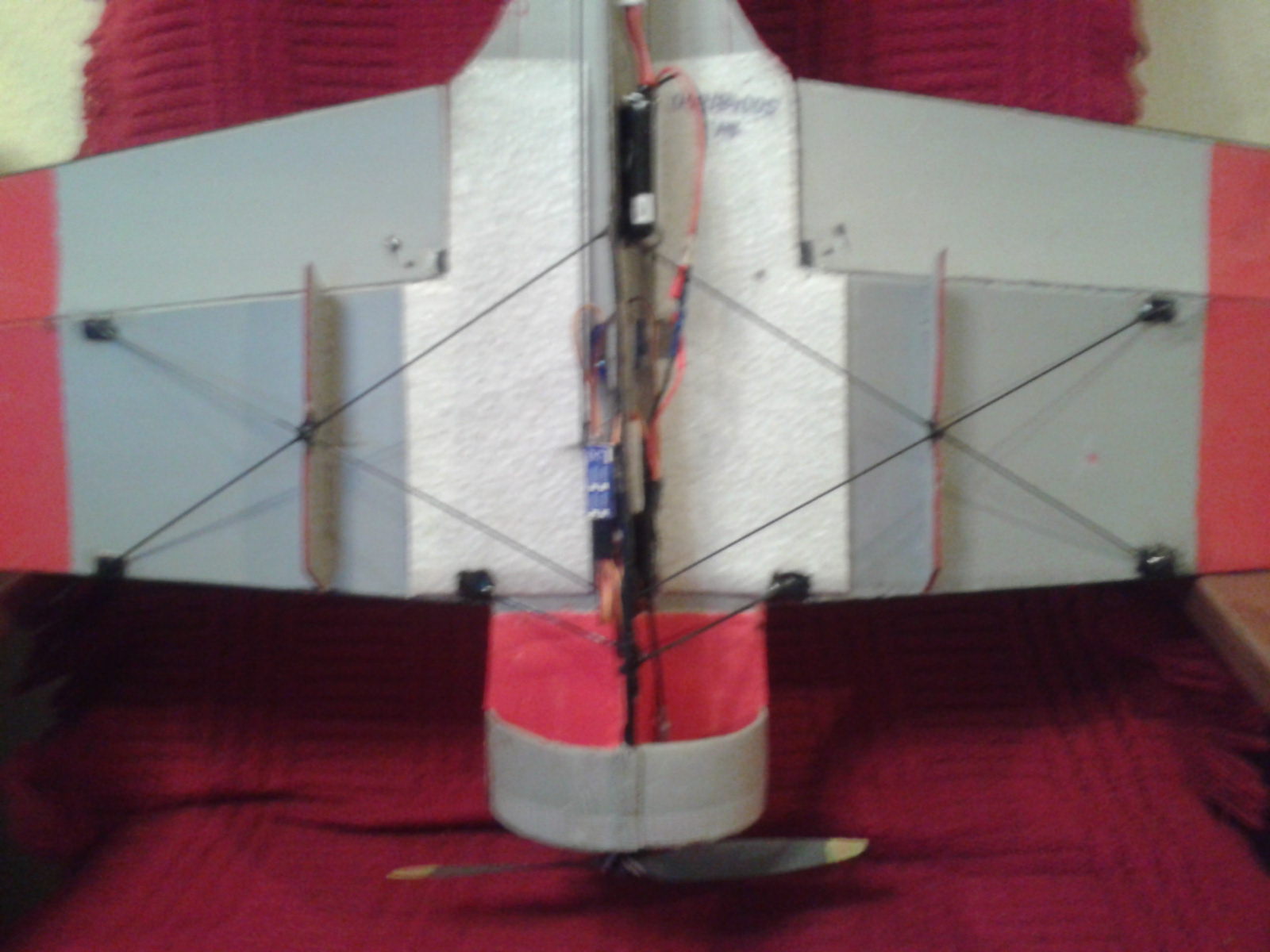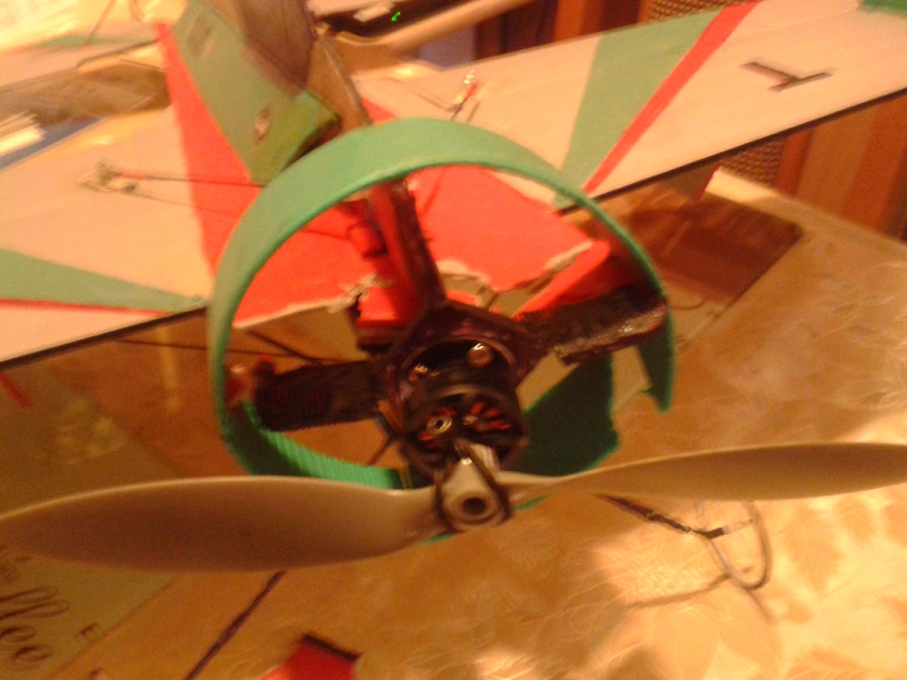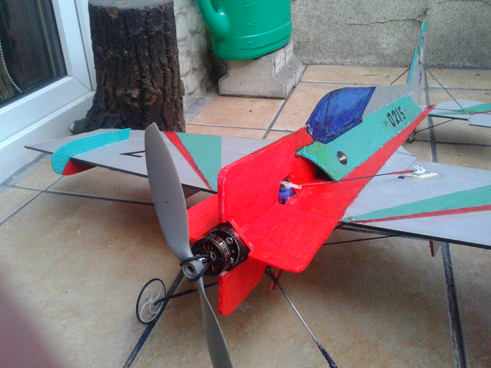 . Depron 3 mm jest tak kruchy i mało wytrzymały, ze w jednym locie po wykonaniu kilku ostrych pętli skrzydła przy kadłubie prawie się złożyły więc musiałem podkleić od spodu w części centralnej pianką EPP 5 mm. Teraz wytrzymałość jest wystarczająca. Zlikwidowałem tez podwozie, bo do niczego się nie nadawało, zwłaszcza, że latam w bardzo wysokiej "trawie". Wymieniłem też silnik na lżejszy E-max GT 2203. Model waży aż 200G więc do hali do której i tak nie mam dostępu nie bardzo się nadaje, ale na polu w sam raz. Fajne doświadczenie i zabawa, ale z motoszybowców nie zrezygnuje.