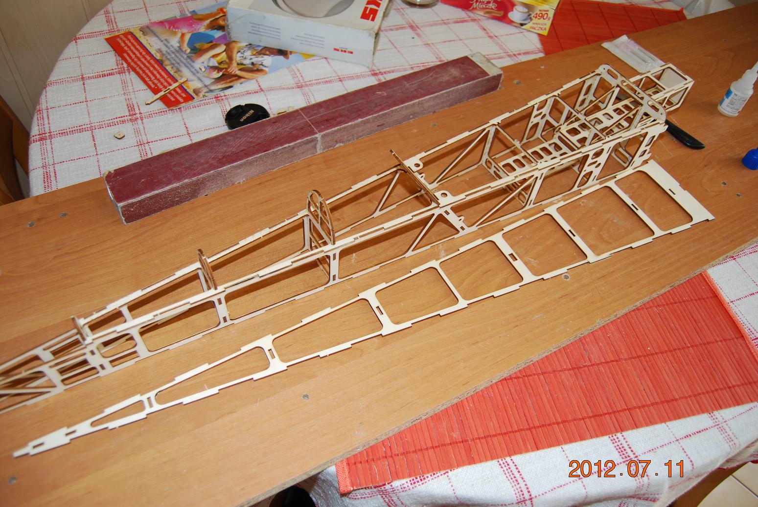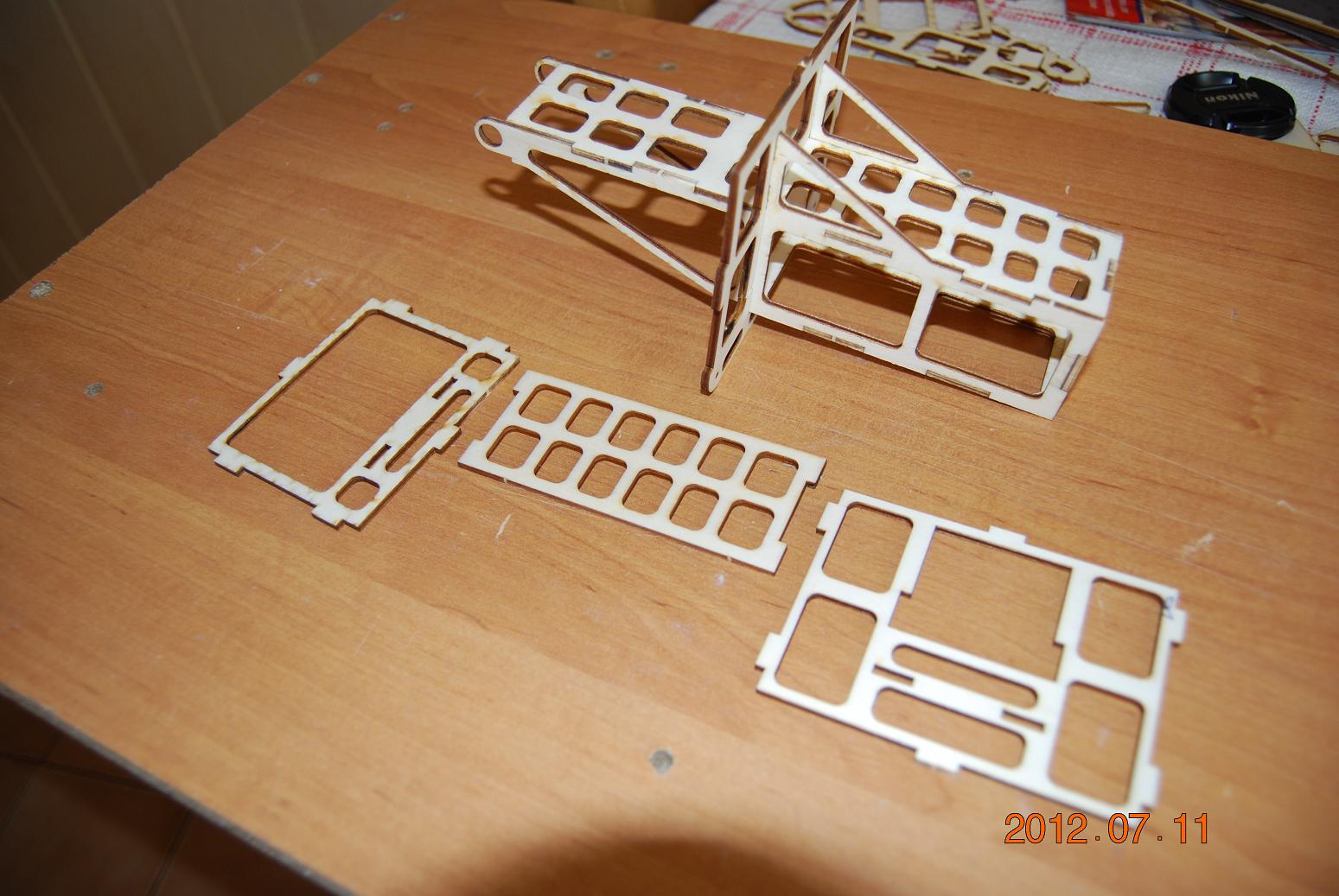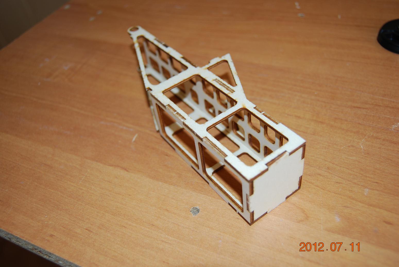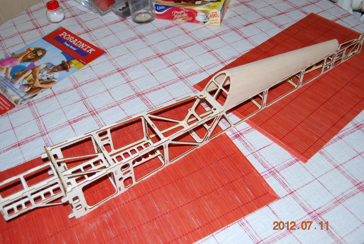 Dostałem dziś przesyłkę z wycinankami. Skleiłem próbny kadłub. Wszystkie sklejkowe elementy modelu ważą 90g. Reszta to balsa. Kadłub z ostatniego zdjęcia waży 96g.