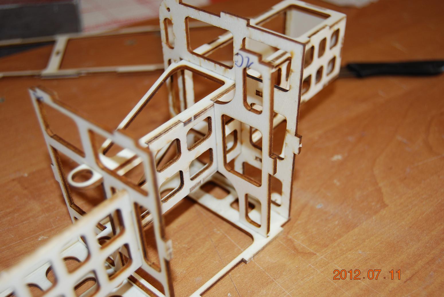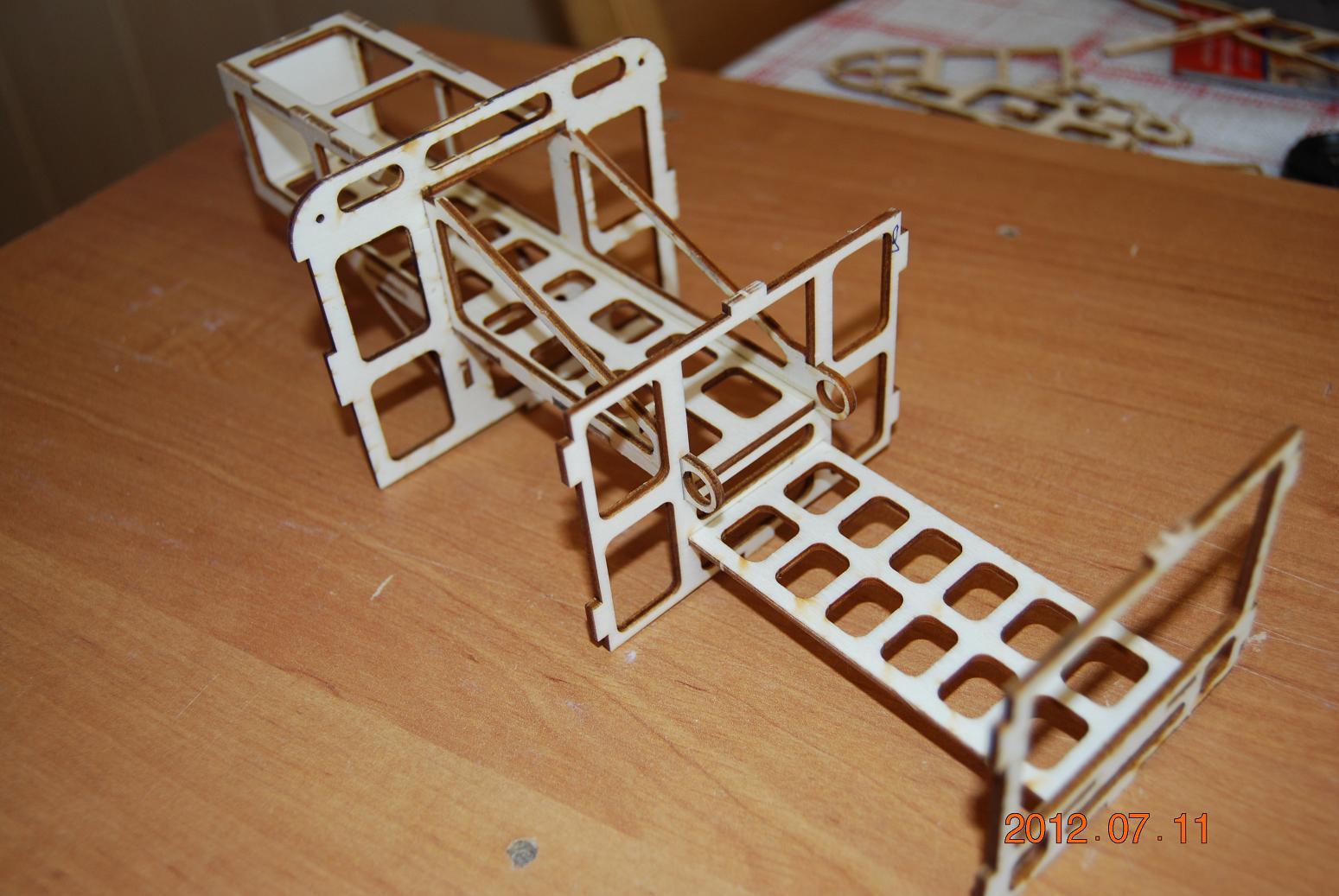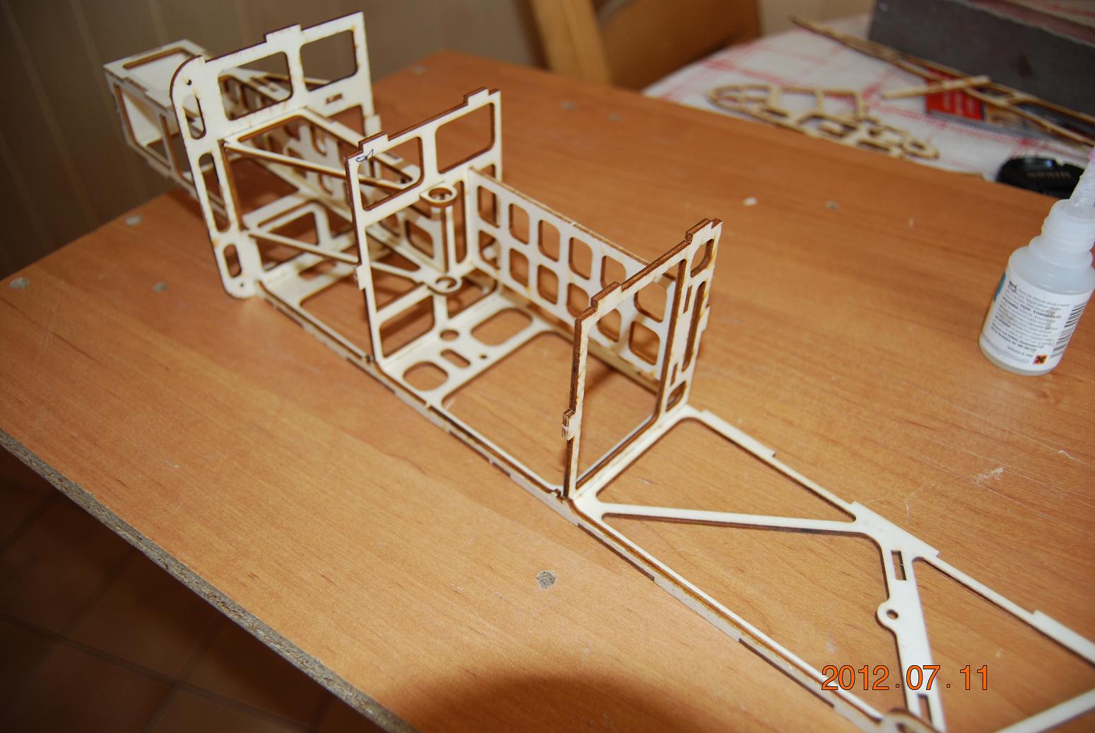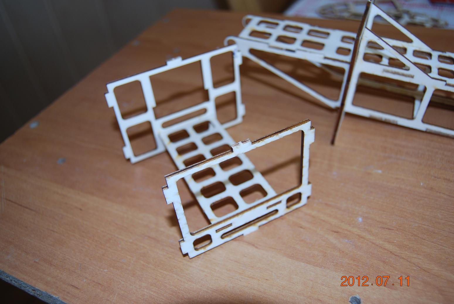 Dostałem dziś przesyłkę z wycinankami. Skleiłem próbny kadłub. Wszystkie sklejkowe elementy modelu ważą 90g. Reszta to balsa. Kadłub z ostatniego zdjęcia waży 96g.