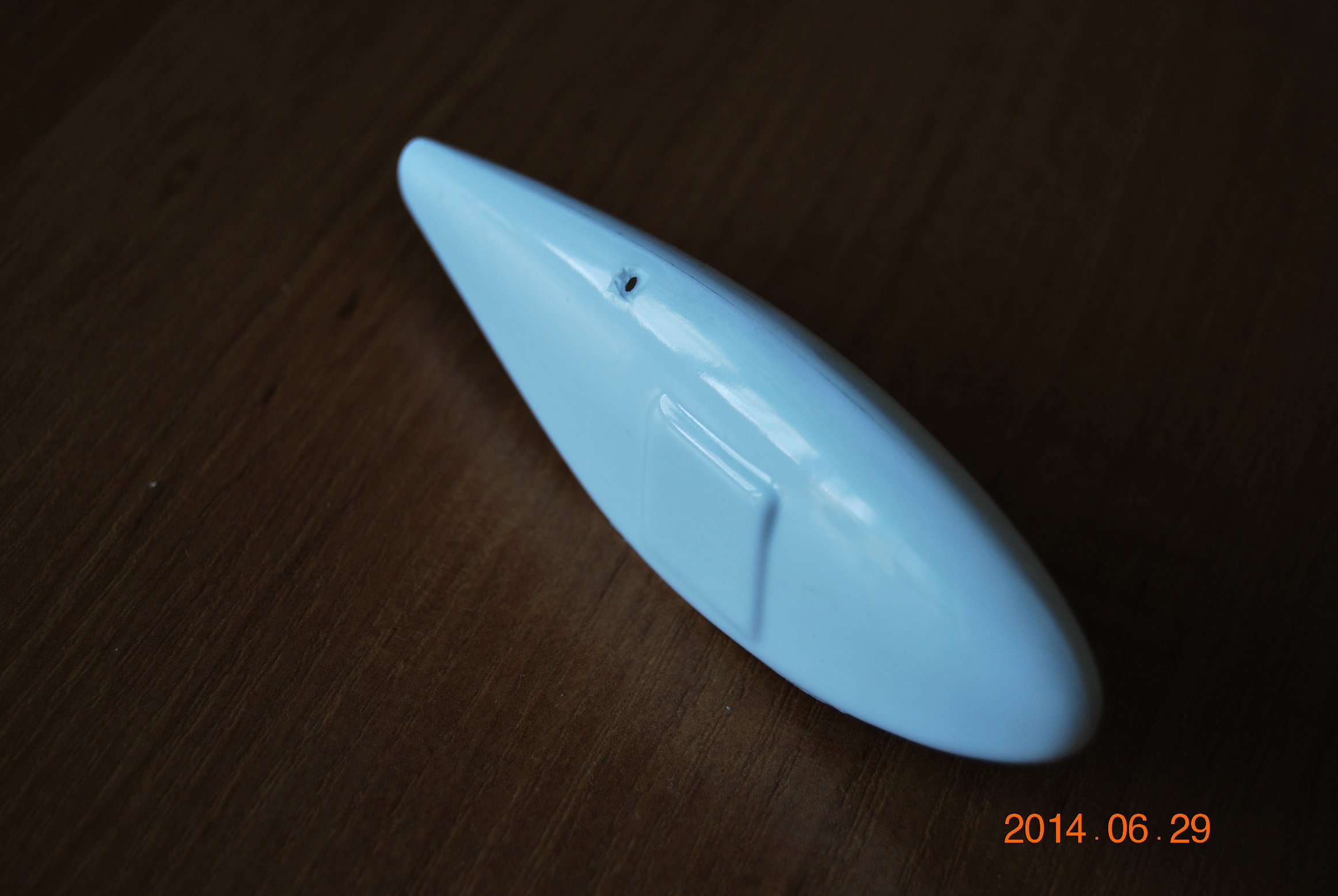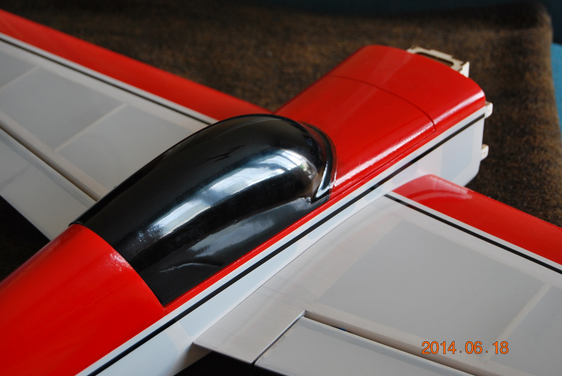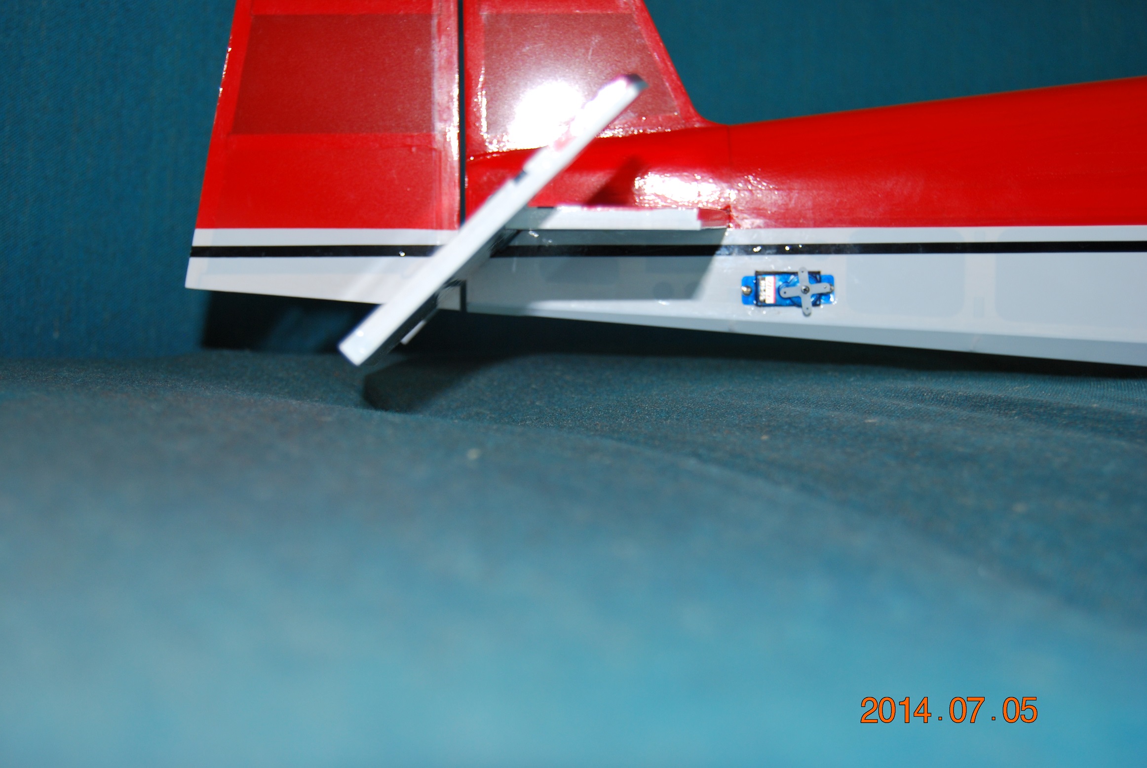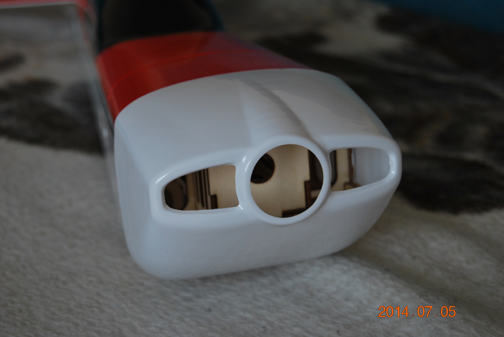 - zostało to co niezbędne żeby trzymała się folia i wyposażenie. Myślę że dla chcącego nie będzie problemem zejść poniżej 600g. Przy wadze 600g obciążenie pow nośnej będzie wynosiło 32g, przy 650g około 34g. Zobaczymy po oblotach. Jeżeli będzie ok to nic już nie będę zmieniał prócz kilku drobnych elementów. Jeżeli obciążenie okaże się za duże zwiększę cięciwę przy kadłubie o około 2cm a przy końcówce o 3cm. ten zabieg pozwoli na zwiększenie pow o około 2,5 dm2 co da zmniejszenie obciążenie pow nośnej co z kolei pociągnie mniejszą prędkość minimalną i takie tam bleblele- wiadomo o co chodzi. Tak czy inaczej, wklejony statecznik poziomy, wklejone zawiaski SK i SW, wycięty otwór odpowietrzający. Docięta osłonka silnika, doszlifowane mocowanie silnika (skłon itp) Wykonane osłonki podwozia. Zakres wychyleń SW i SK po około 45st.