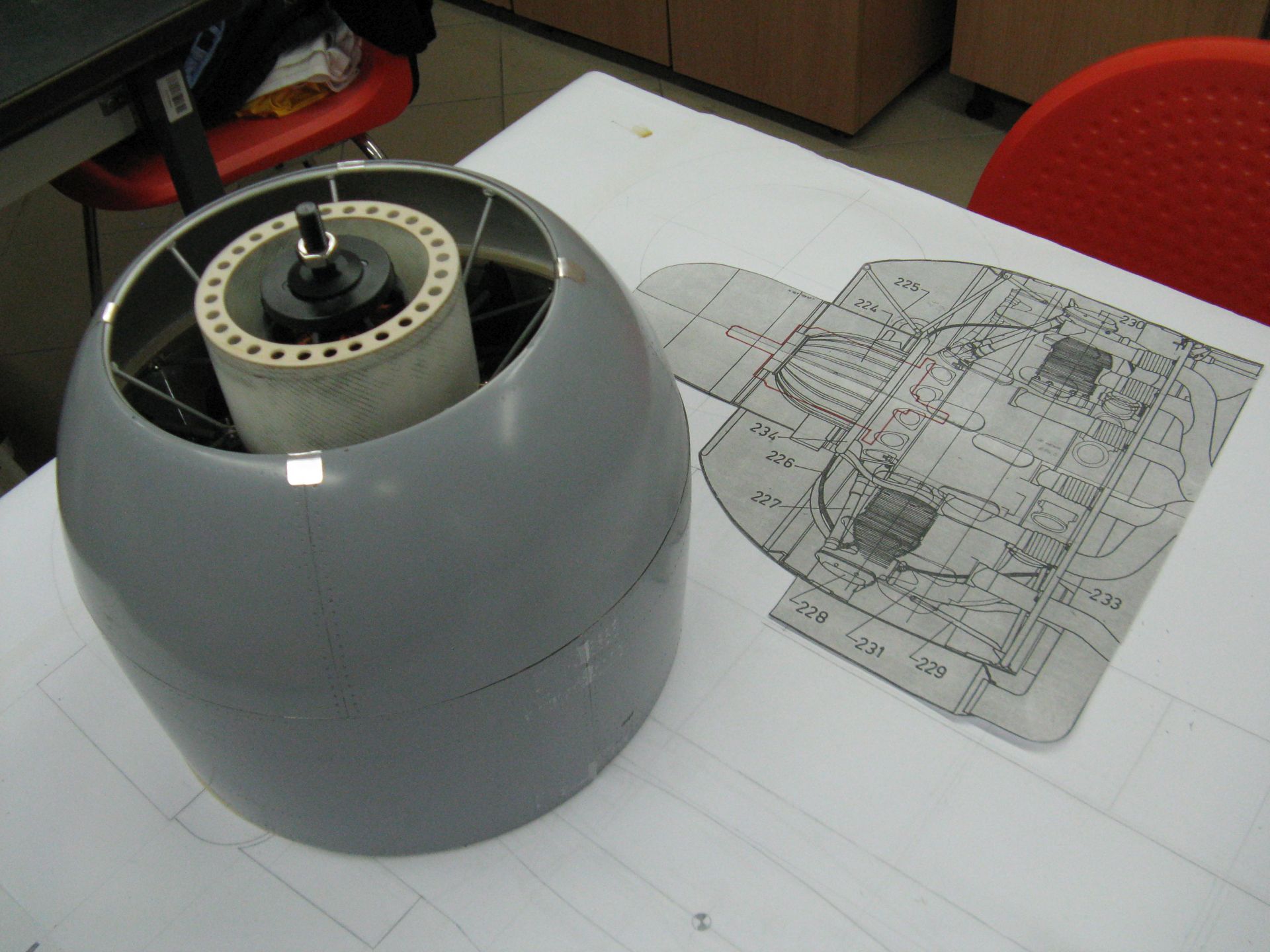 Dalsze prace nad modelem. Osłony silnika starałem się zrobić jak w oryginale.