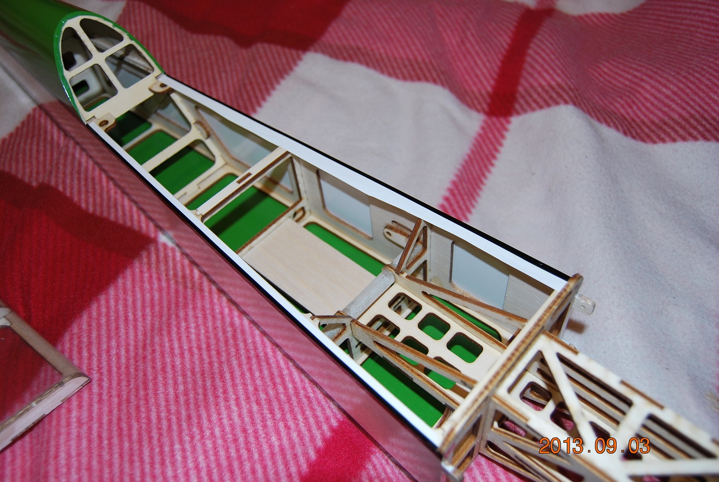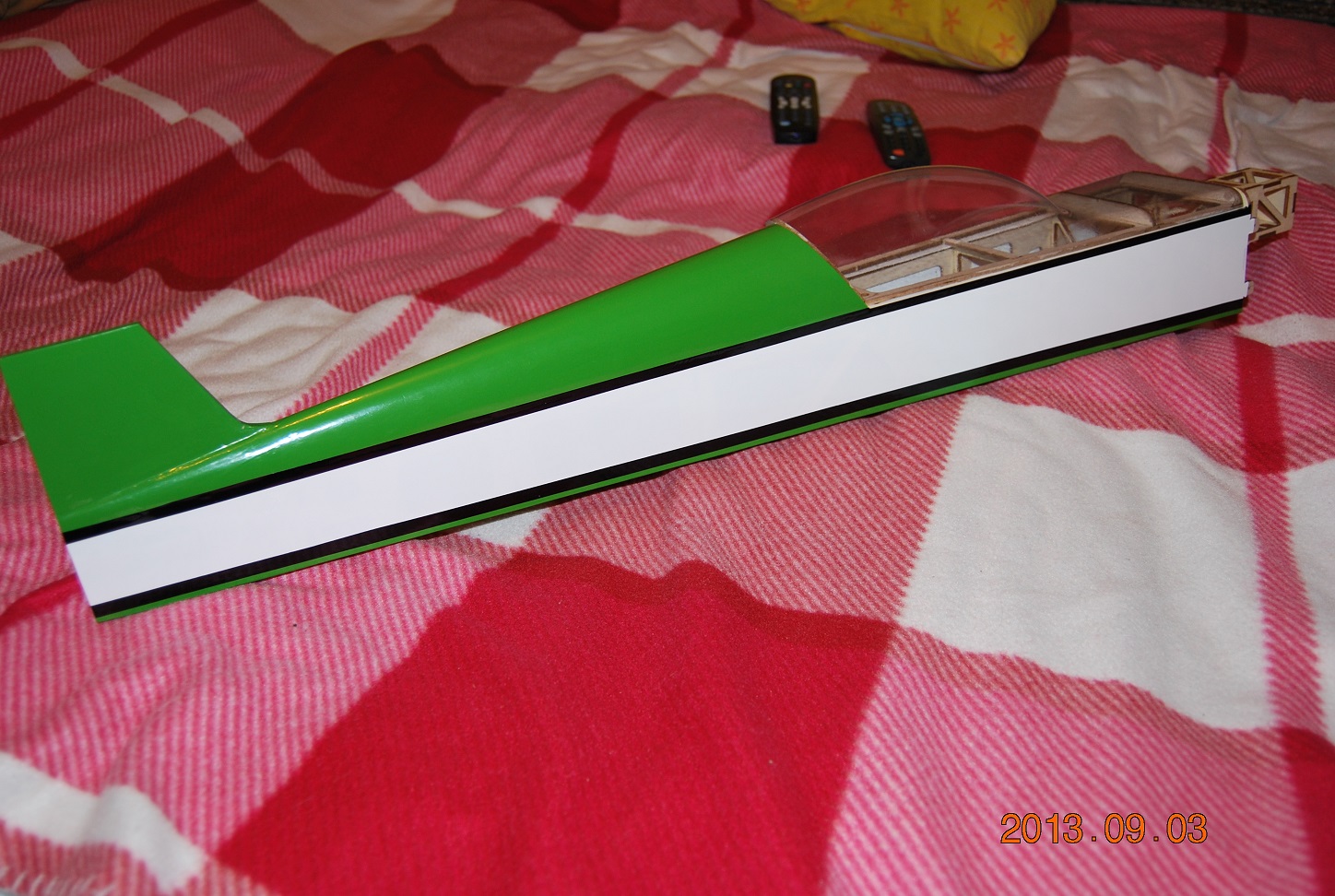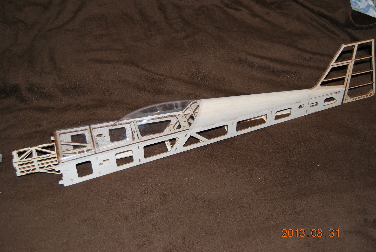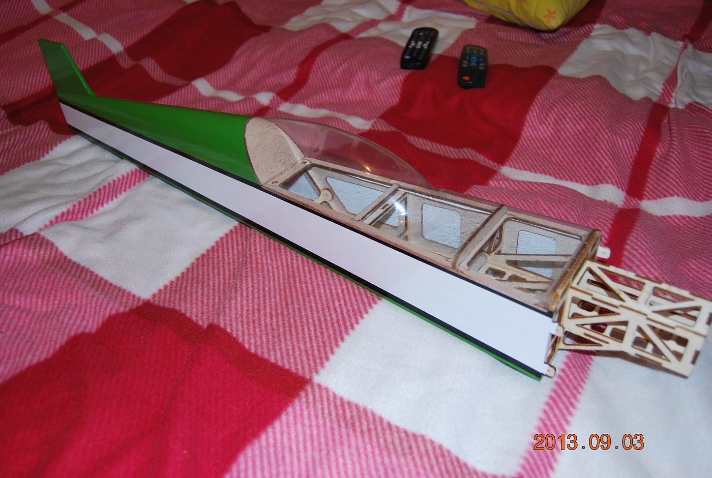Zrobiłem kadłub do końca. 136g z kabinką. Dużo ale sama wytłoczka waży 33g, może zrobię z laminatu. Za to kompletne usterzenie poziome i pionowe waży 12g zamiast 30 w poprzedniej wersji.