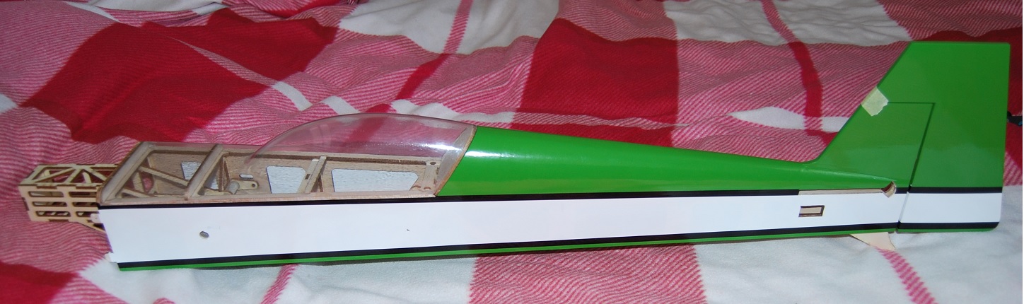 Zważyłem graty napędowe czyli silnik, regler i śmigło- 140g, do tego mam podwozie z kołami 14g. Żeby nie było za ciężko zamówiłem pakiet 1300mAh 3s . Może wydawać się za mały ale do spokojnych lotów wystarczy. Chcę utrzymać w wagę do lotu 750g, wszystkie graty łącznie z podwoziem i modelem bez pakietu ważą 600g. Pakiet 110g, jakieś śrubki i pierdoły dołożą ze 40g. Przy tej wadze obciążenie pow wyjdzie jakieś 30g/dm2 więc w miarę nieźle. Z czego można zrzucić wagę? Na przykład z reglera- wazy 42g, kupię taki który waży 22g. Kolejna sprawa to nowe lotki, można je odchudzić ze dwa razy co da kolejne 30-40g. Jeżeli model przeżyje loty to wywalę ze skrzydła żeberko podtrzymujące półkę serwa. Na 100% wyażuruję bardziej kadłub i trzy balsowe wręgi. Sama wytłoczka kabiny waży 33g , stosując laminatową albo z cieńszej folii można urwać z 10-15g.Słowem- można powalczyć z wagą i będzie to na 100% z pożytkiem dla własności lotnych bez obniżenia wytrzymałości.