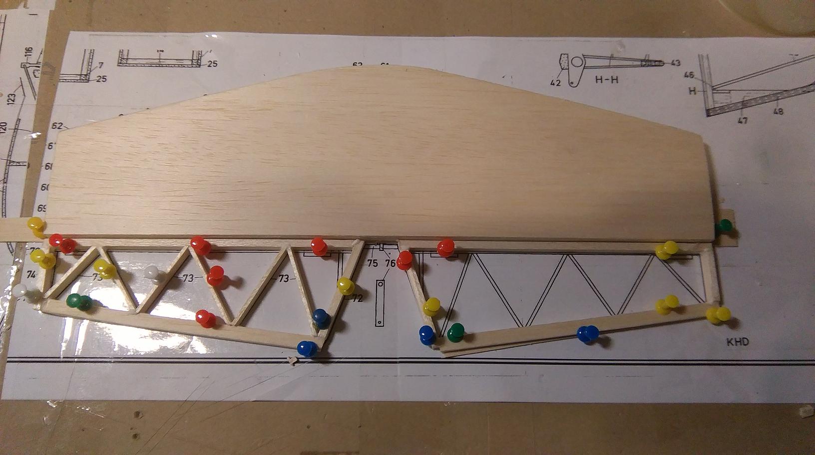 Wręgi miałem zamiar zrobić z balsy 3mm , te 2 szt. przy skrzydłach ze sklejki 2 mm. W rogach kadłuba dać listewki 3x3 lub 4x4 a potem kadłub okleić balsą 2 mm.