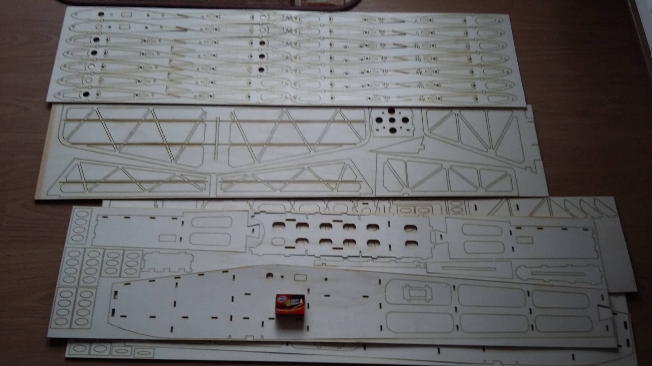 Sporo czasu zeszło mi się na wydłubywaniu elementów i pozbawianiu ich zbędnych fragmentów. Następnym razem mostki muszę zrobić mniejsze szczególnie w grubszych balsosklejkach!!!