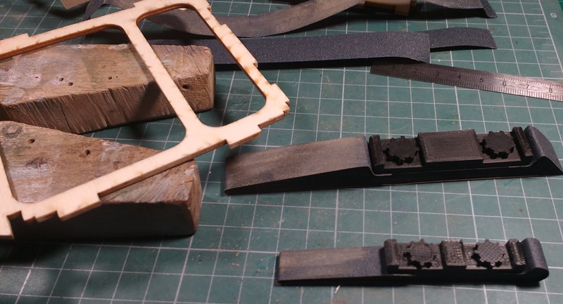 Wydrukowane, szpachla zamówiona. Kopyto powiększone na grubość przyszłego laminatu, aby ładnie naszła na kadłub. Spasowane na pierwszą wręge.