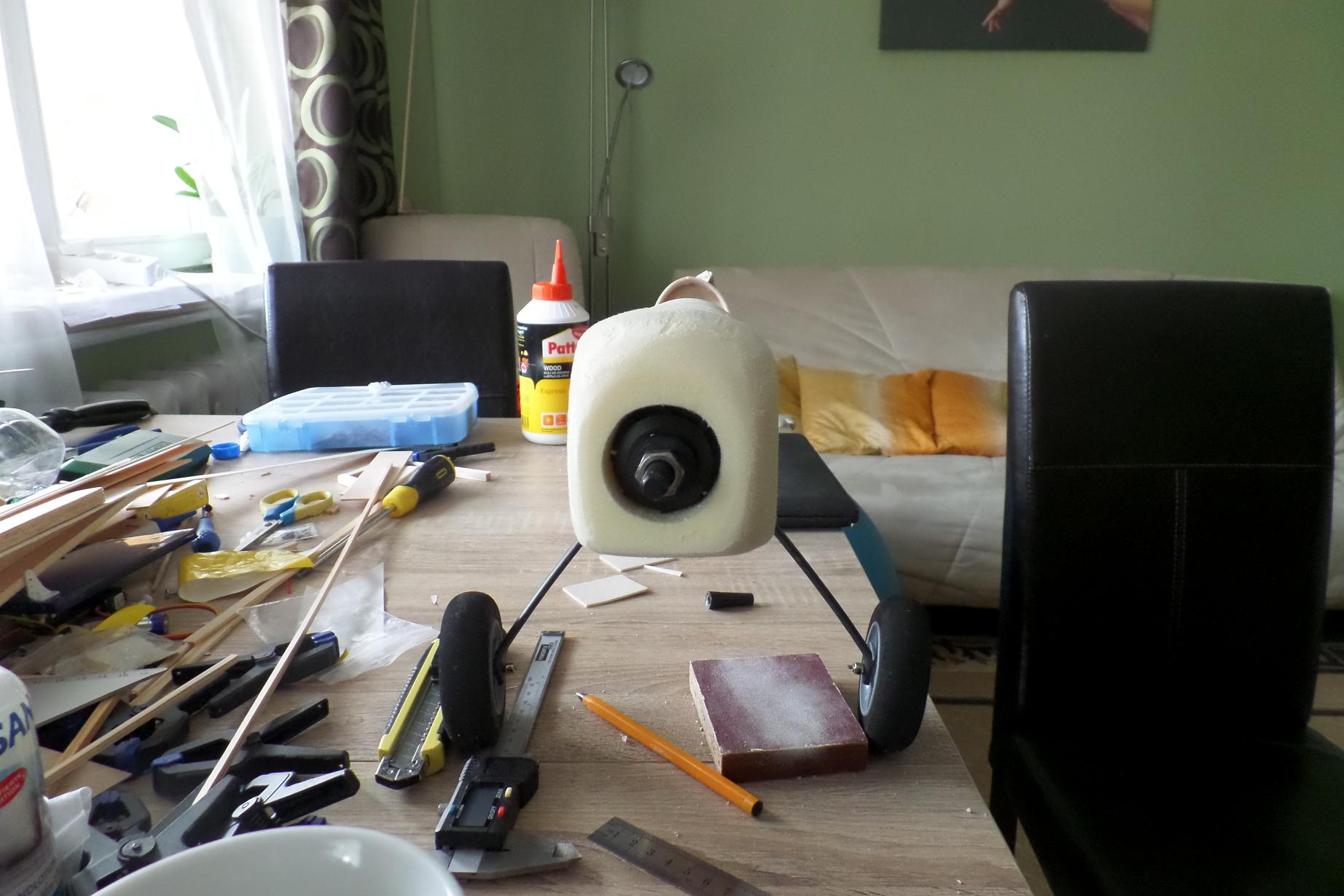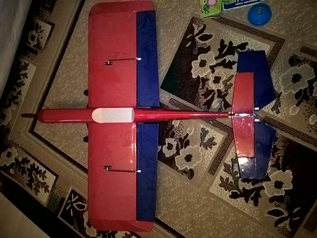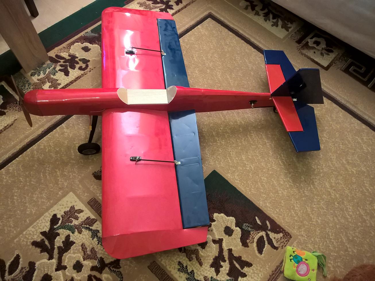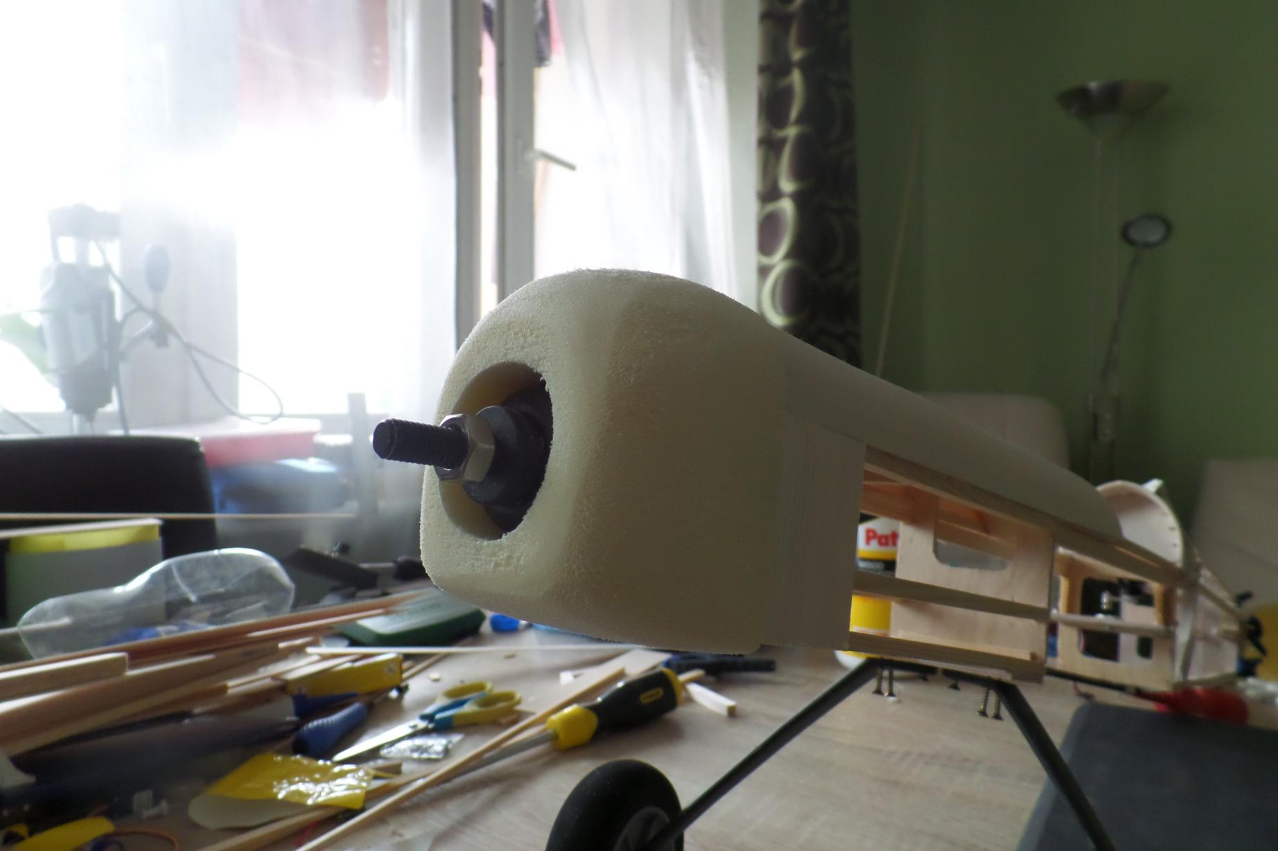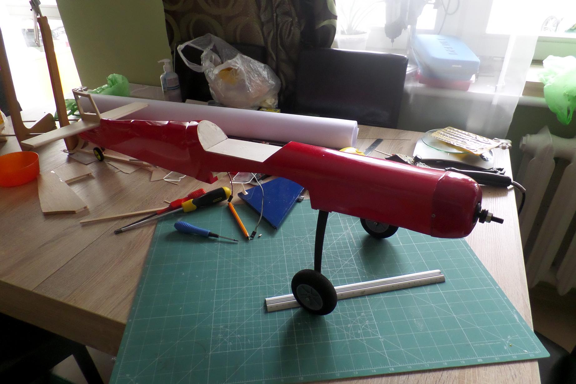 Przód (od silnika do podwozia) oparłem o stół, wyginałem przykładając siłę przy statecznikach.
