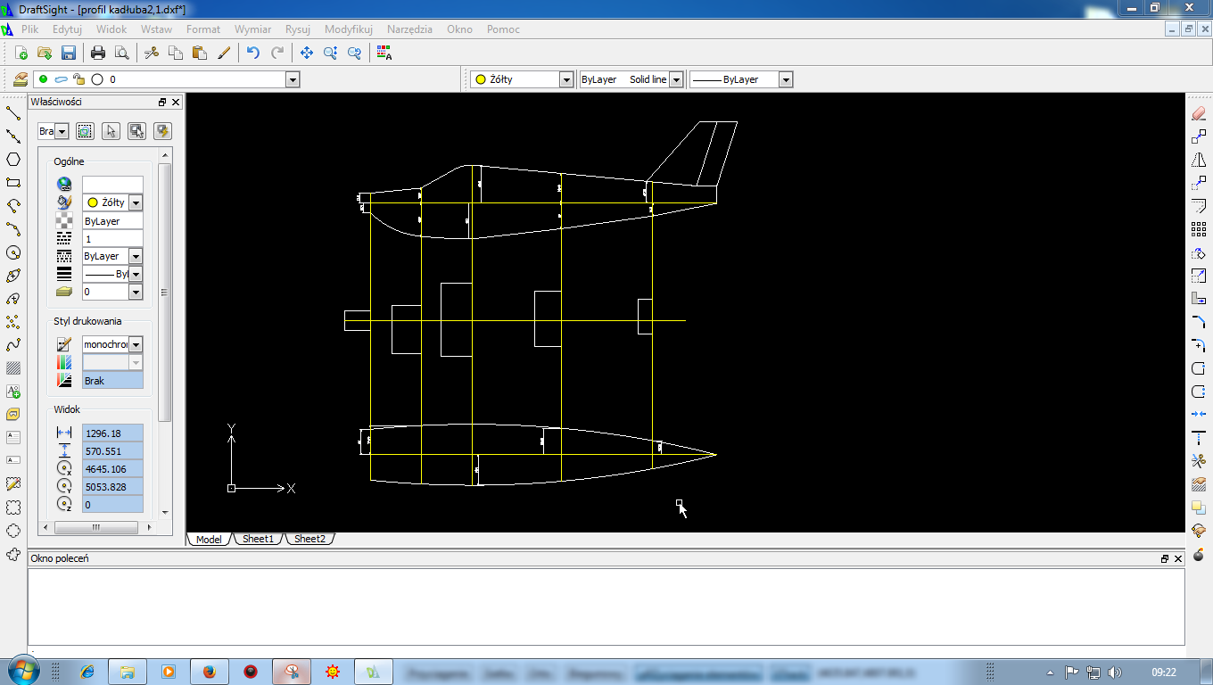 Kadłub już mam wyrysowany, mniej więcej jak to ma wyglądać i mam pytanie: chodzi o wręgi kadłuba. Na ten moment mam szablony prostokątne.