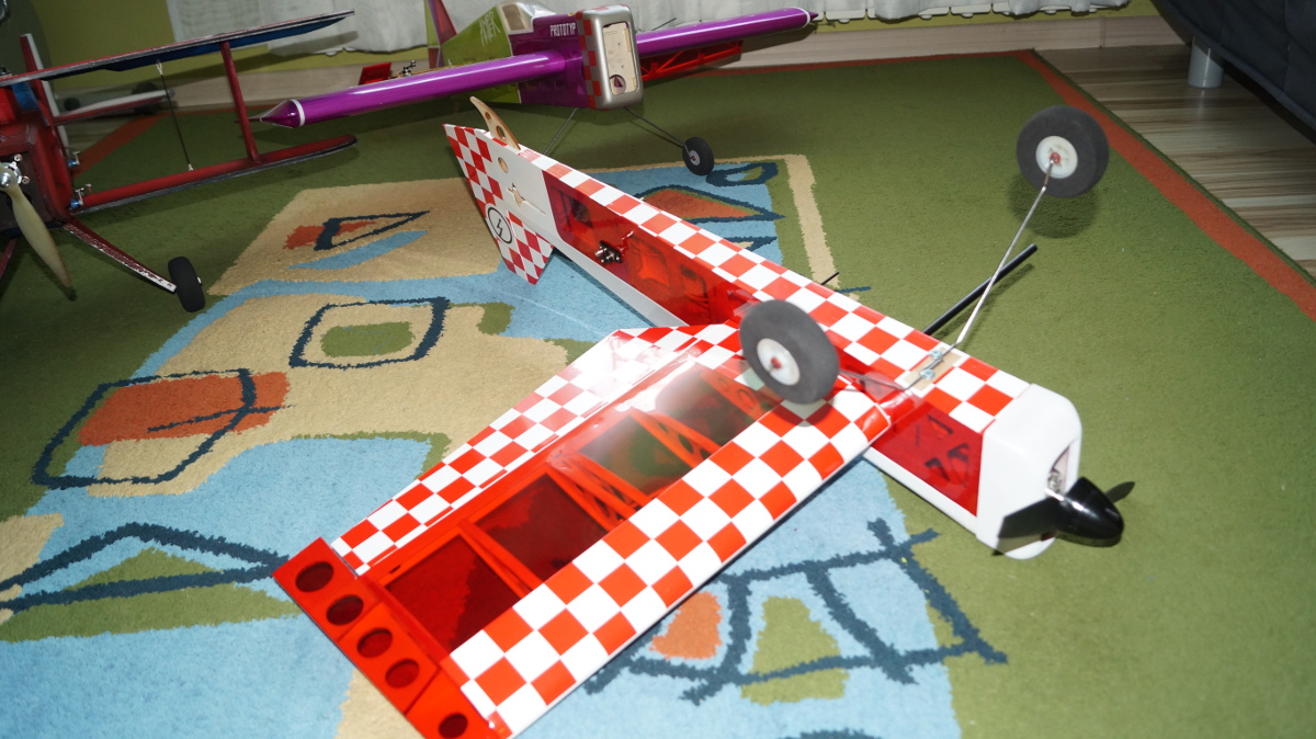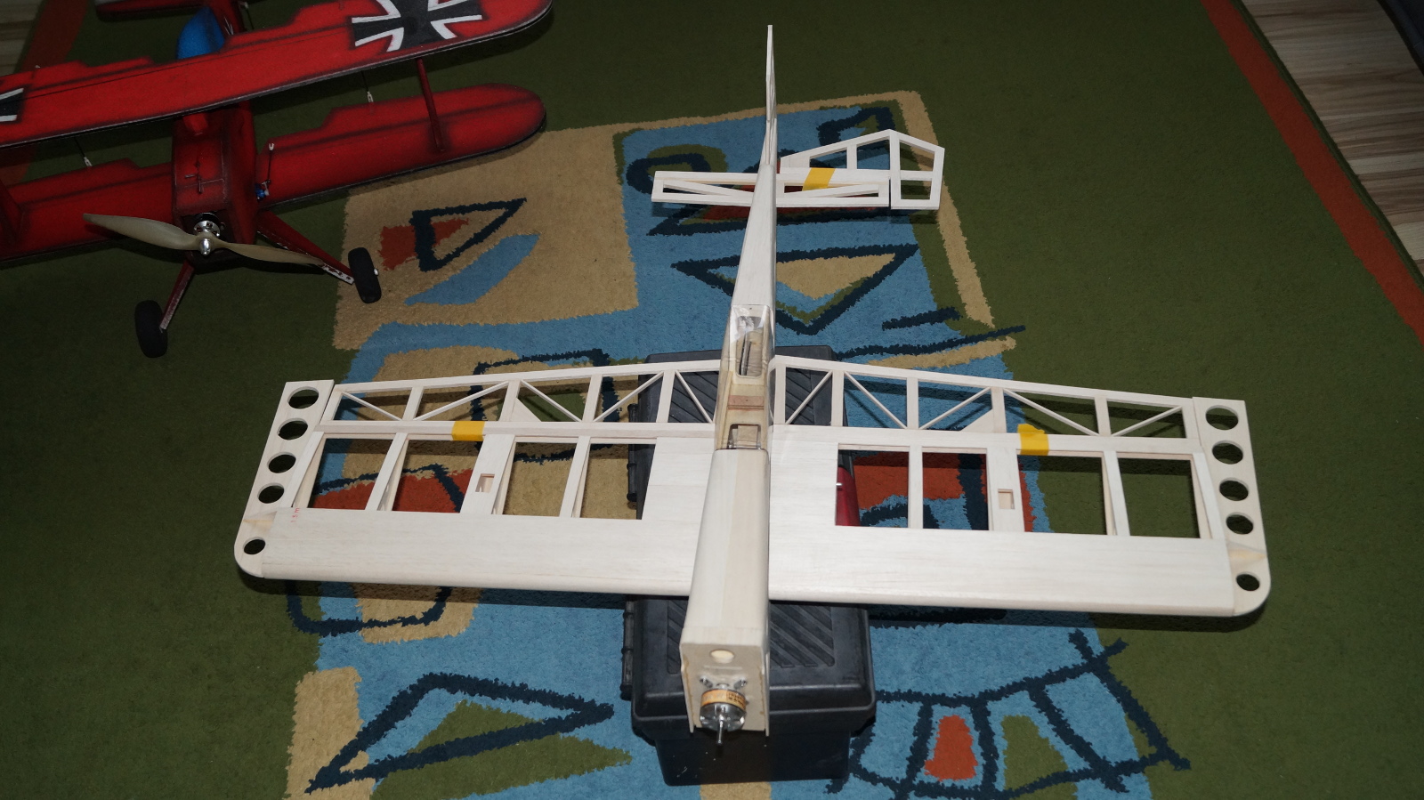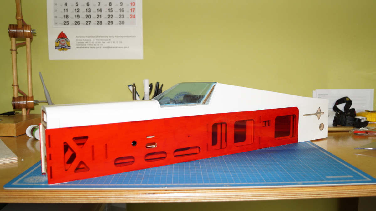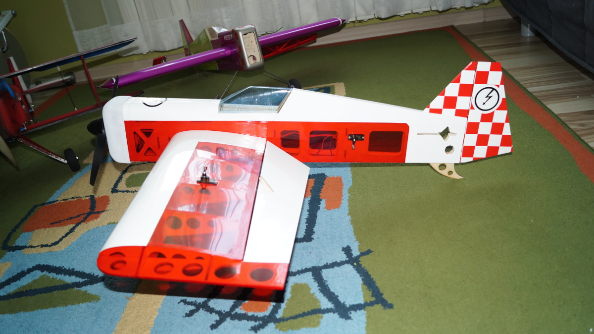 Dziękuje Sławku. Masz rację co do garbu - to kwestia gustu. Mi osobiście odpowiada taki kanciasty... To jest mój pierwszy model z kanciastym garbem. Obserwuje Twoją Katane Sławku i powiem, że waga powala... Mój do lotu będzie ważył jakieś (RTF) 850 - 860 g. Obciążenie przy pierwszej wersji Ampera wynosiło 34,4 g/dm2. Sądzę że wynik nie jest zły ale używając lżejszej foli jak podpowiadasz (moja Oracover standard, bo coś tam zalegało więc wystarczyło dokupić co nieco) i wsadzając pakiet 1500 mAh 3S bo udało mi się na takowym polecieć to z pewnością poprawił bym ten wynik.