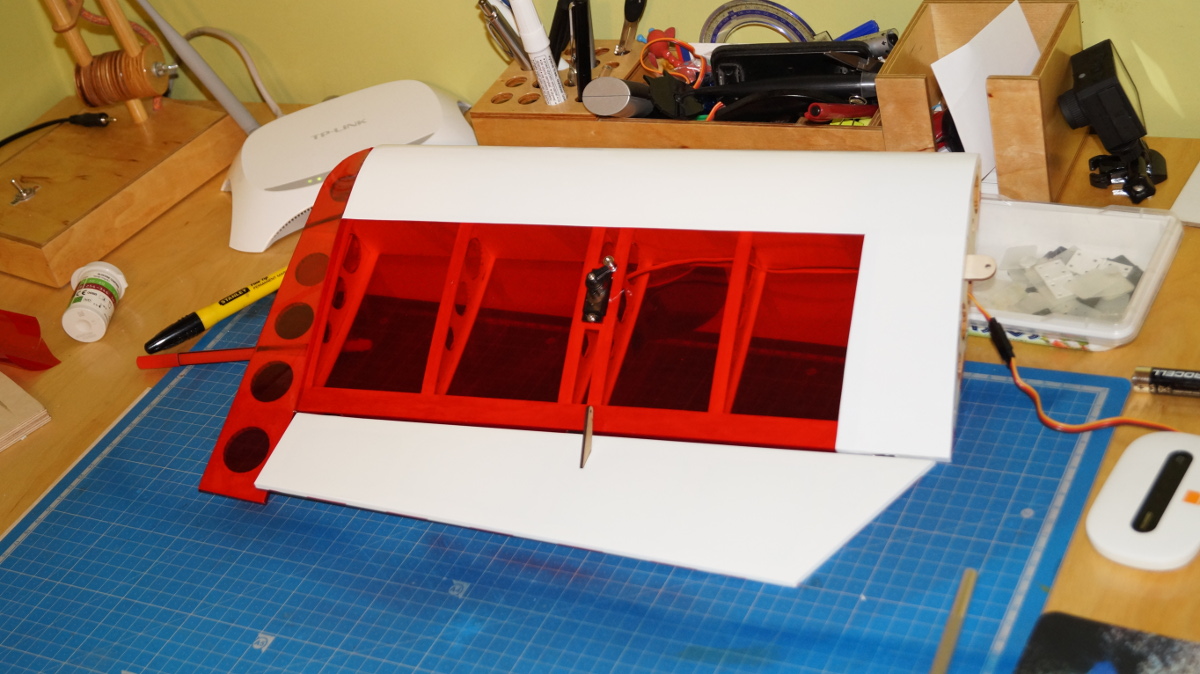 Przy okazji metalowe snapy się rozpadły jak chciałem zdemontować z prototypu więc zrobiłem takie z drutu 1,5 mm przymocowanego do pręta węglowego 2 mm, owiniętego nicią i zalane CA... Wydaje mi się że wytrzyma. Pierwszy raz coś takiego robię zawsze kupowałem gotowce.