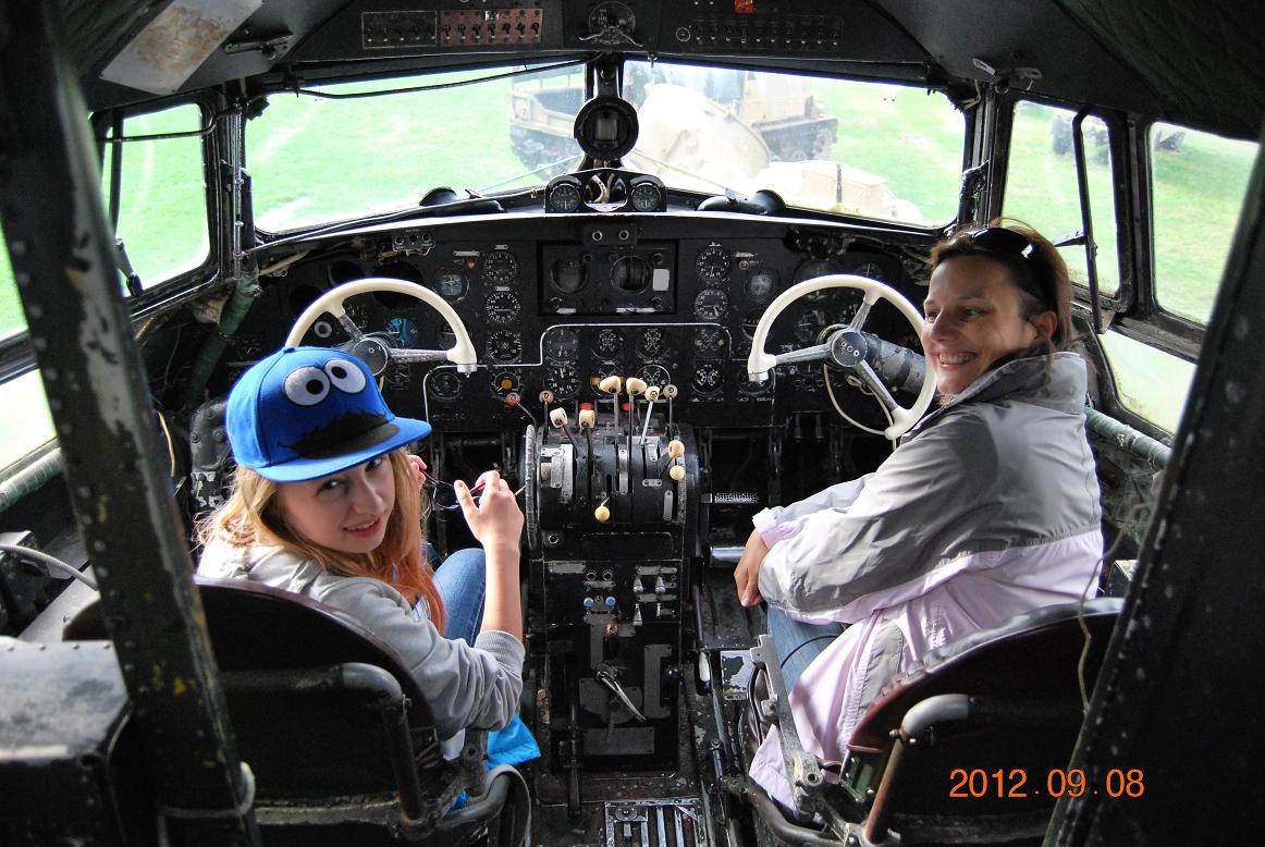 Odwiedziłem Muzeum Orła Białego. Tragedia normalnie. To muzeum obraca się w ruinę, kilku eksponatów brakuje, jak dowiedzieliśmy się nieoficjalnie dwa śmigłowce Mi zostały sprzedane w prywatne ręce a co się stało z lokomotywą to chyba nikt nie jest w stanie powiedzieć, została po niej tylko tabliczka. Ciekawe czy w Muzeum Powstania Warszawskiego tak samo dba się o historię, pytanie raczej retoryczne. Na początek moje dziewczyny w kabinie Li 14, któregoś tam klona zerżniętego przez ruskich samolotu DC2 lub DC3 znanego u nas jako Li2 (chyba)