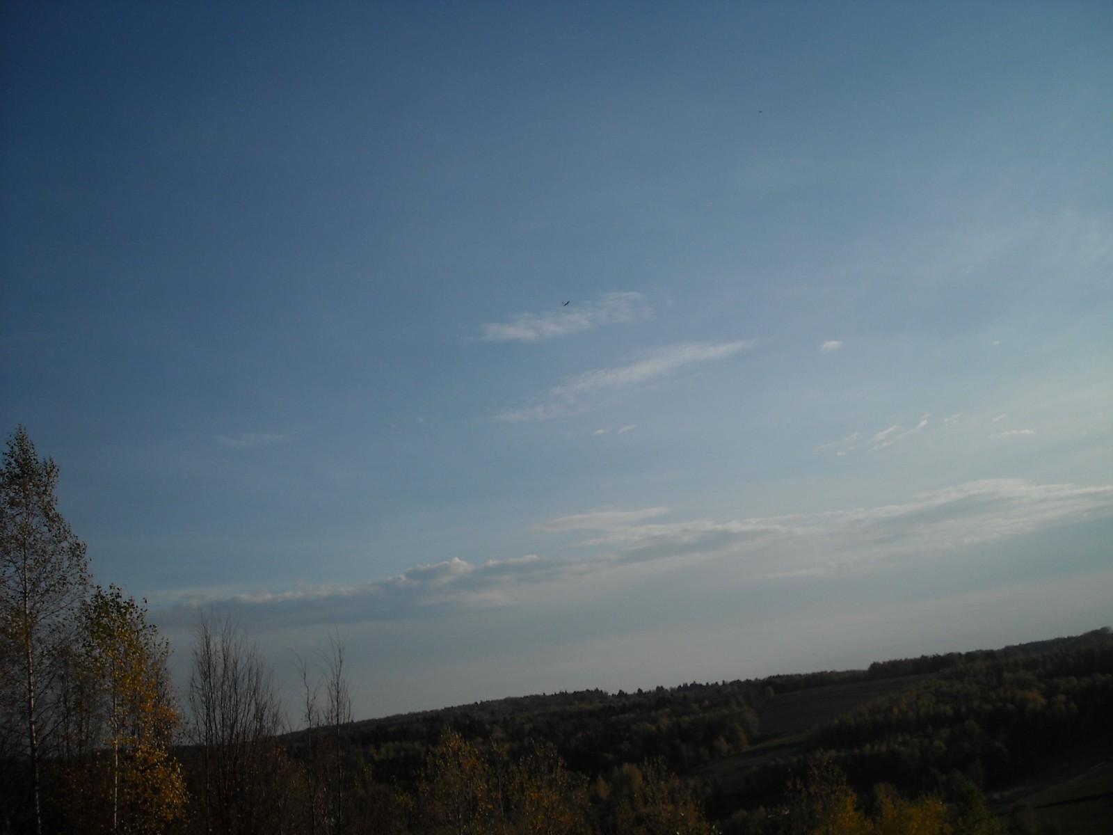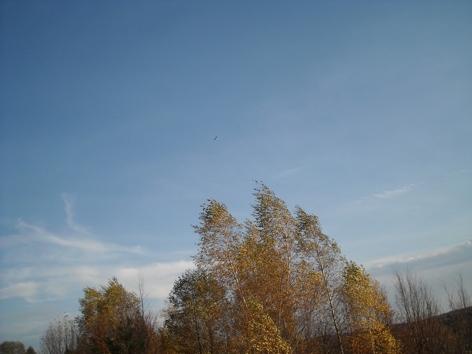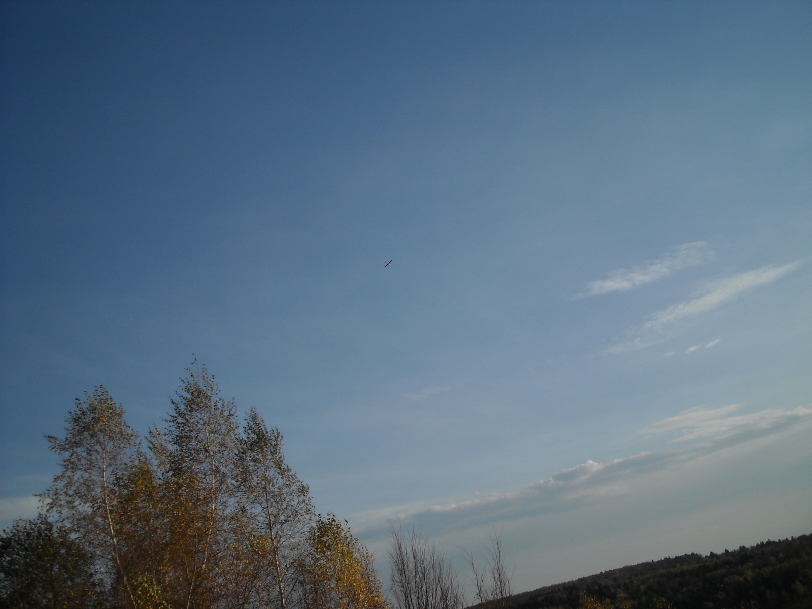 Na pierwszy ogień idzie Mewa , nosi nieźle , ale dość turbulentnie . Po parunastu minutach latania wpadam na karkołomny pomysł, żeby zrobić parę zdjęć - aparat mam oczywiście w kieszeni , ale jakoś udaje mi się go wydobyć , odpalić i lewą ręką robie " na pałę " naście zdjęć . O dziwo , w większości trafionych , choć niewiele widać bo szybowiec jest wysoko .