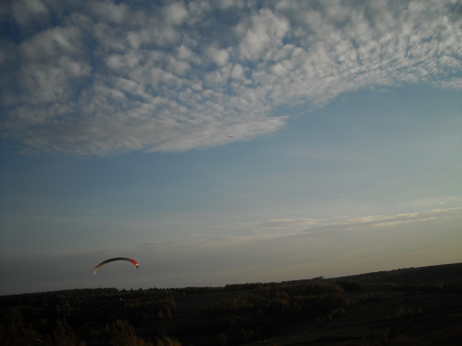 Nad odległą o kilka kilometrów górką dostrzegam cztery paralotnie - na mojej nie ma żywego ducha