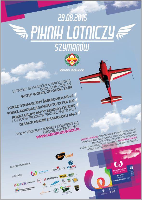 Już w najbliższą sobotę, we Wrocławiu, odbędzie się piknik lotniczy. Program co prawda bardzo słaby (jeśli to nie za mało powiedziane ;) ) ale jak ktoś chce miło spędzić sobotę w lotniczym klimacie to jak najbardziej. W zeszłym roku można było posiedzieć w szybowcach, samolotach, również pooglądać starty / loty / lądowania szybowców więc myślę że i w tym roku będzie to możliwe.