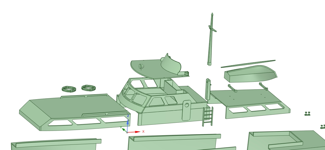 Choć wyglądem przypomina trochę kultowy model jachtu „Bałtyk”, którego plany zostały opublikowane w książce Pana Wojciechowskiego, tak naprawdę nie jest to kopia tego modelu. Model został opracowany do druku 3D baz zbytniego trzymania się wymiarów oryginału, bardziej zależało mi na uproszczeniu tak aby łatwiej było go drukować a co za tym idzie znacznie skrócić czas drukowania i zmniejszeniu ilości filamentu potrzebnego do druku.